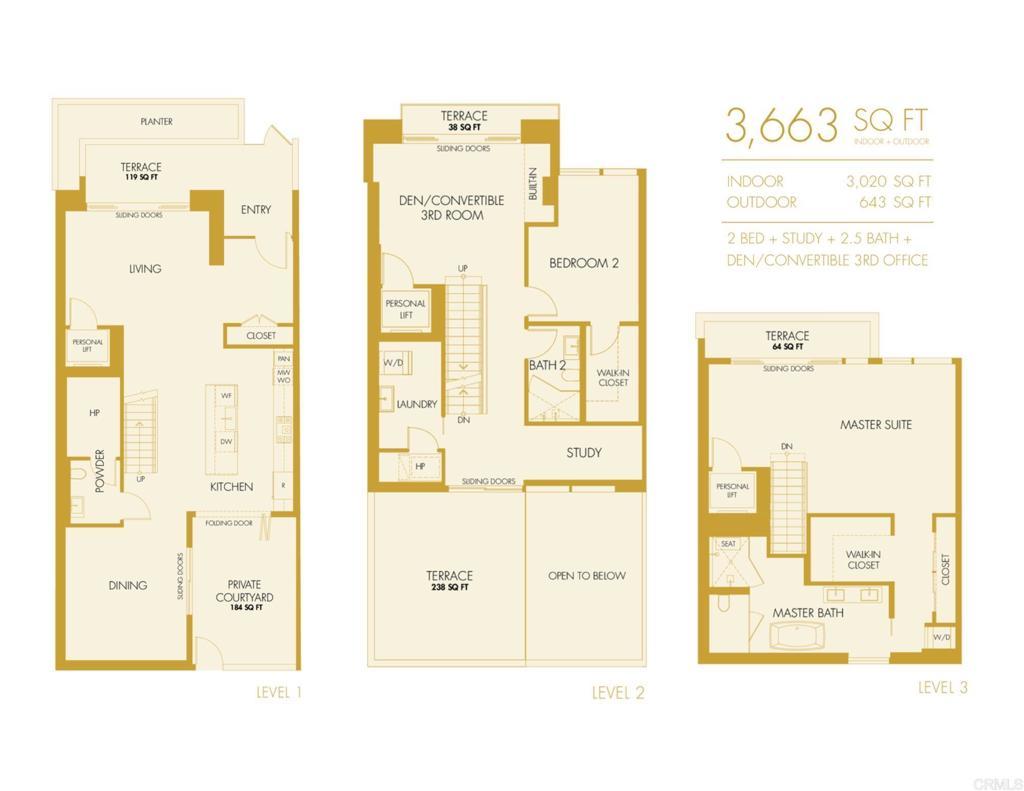 Newly updated and professionally designed interior accentuates the modern architecture in this stunning townhouse that lives like a single-family home. Plus, the added value of a 'lock-and-go' lifestyle, 24/7 front desk staff and access to luxury high-rise amenities. Experience sophistication & comfort in this rare offering - the largest townhouse at The Park Bankers Hill, one of San Diego’s most prestigious addresses. This contemporary townhouse features three levels serviced by a private elevator. Floor-to-ceiling glass windows on both the north and south sides fill the home with natural light, while floating staircases enhance the open, loft-like layout. The 1st floor features ceilings over 10 feet and serves as the main entertaining area, with an entry foyer, dining space, kitchen, powder room, living room, and a patio that opens to the house. On the 2nd floor: a guest bedroom, bathroom, den (which could be converted to a third bedroom), open office, and a wine or laundry room with existing hookups. The entire 3rd floor is dedicated to the primary suite, complete with a sitting area, ample closet space including a walk-in, separate laundry and a luxurious bathroom. The architect's design concept was to 'blur the sense of indoor/outdoor living'. Five outdoor terraces/patios that infuse San Diego's sunlight & provide spaces for dining, entertaining, and a curated garden. Creston & Amazon Alexa fully automated Smart Home system conveniently operates lighting, Sonos audio, and solar window shades. The exterior is clad in glass, Volakas marble, and stamped concrete formwork to announce a sophisticated arrival. Sited across the street from Balboa Park's 1,200 acres in the vibrant Bankers Hill neighborhood, this exceptional residence offers a unique opportunity to enjoy upscale urban living just steps away from renowned dining and the city’s cultural landmarks. The Park was completed in 2018 by DIALOG (architects), developer Zephyr, and contractor Balfour Beatty. Lavish amenities include 24/7 front desk staff, private lounge, conference/dining room, full event kitchen, wine room, gym, pool, BBQ, two guest suites, and a dog wash. The six townhomes at The Park complement the 14-story luxury tower comprised of 60 modern homes and 2 ground-level retail spaces. The townhouse has 2 parking spaces with an EV charger.