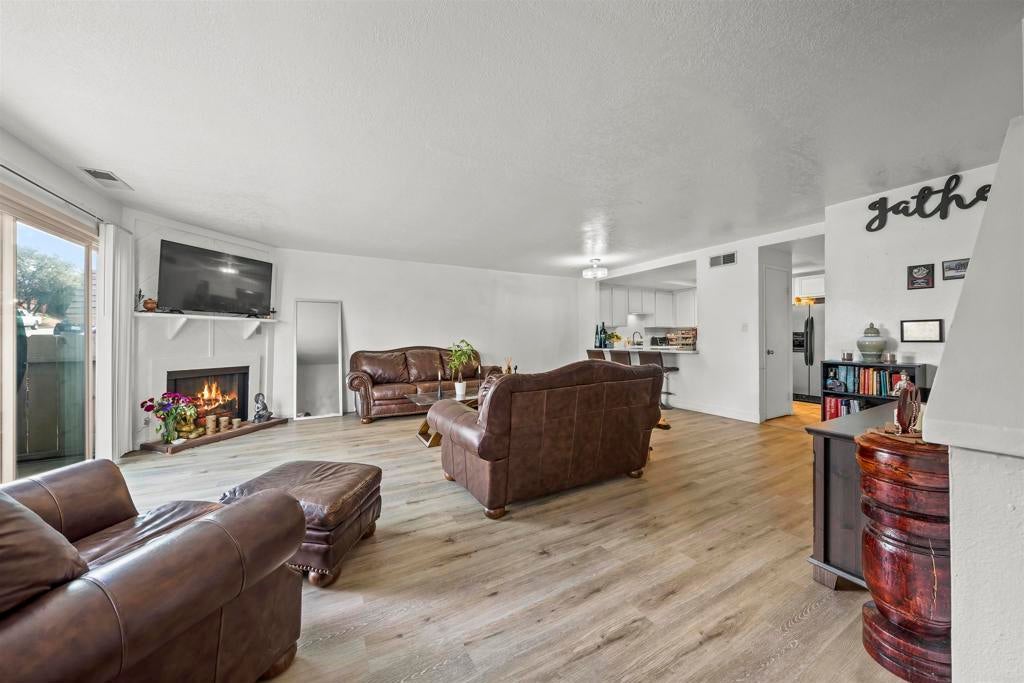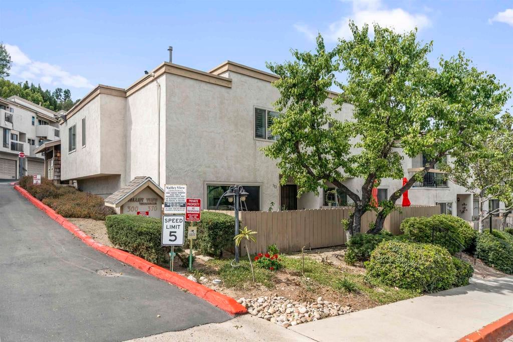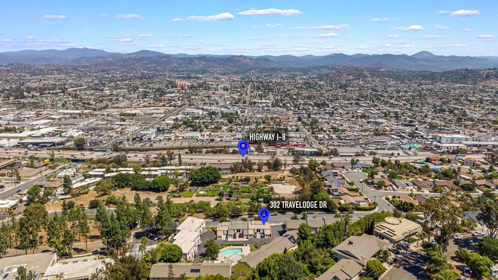 VA Approved! Presenting 302 Travelodge Drive, a spacious 2-story corner townhome offering comfort, privacy, and modern upgrades. Featuring 3 bedrooms, 2.5 bathrooms, and 1,474 sq. ft. of living space, this home is designed for both everyday living and entertaining. With only one shared wall and two separate entrances—one on each level—this property lives more like a detached home. The open floor plan highlights a stylish kitchen with quartz countertops, stainless steel appliances, and ample cabinetry. The living room offers a cozy gas fireplace, dual-pane windows, and direct access to a private patio. A convenient downstairs half bath and laundry room. Upstairs, the primary suite features high ceilings, a walk-in closet, and a private bath. Two additional bedrooms share a well-appointed full bath. Modern upgrades include central A/C and heating, updated bathrooms, and dual-pane windows throughout. You have access to the attached garage through your upstairs entrance (plus an additional assigned parking space right next to it) add to the ease of daily living. The HOA includes trash, water, and sewer, with added perks such as abundant street parking right in front of the unit, along with access to a community pool and recreation room. Ideally situated just 2 minutes from the I-8 freeway and within walking distance to gas stations and convenience stores, this home offers the perfect balance of comfort and accessibility.