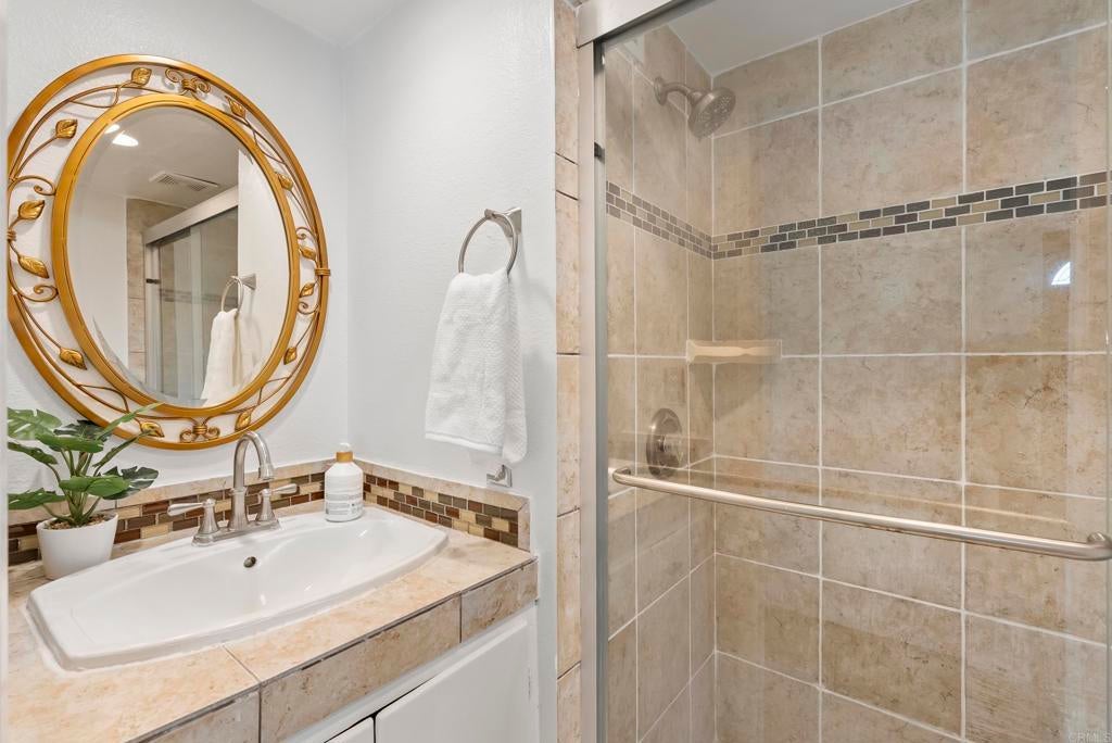 Wonderful home located in the desirable community of Vila Portofino in Tierrasanta! Perfectly situated on a corner lot - Dramatic entry with vaulted ceilings- Open floorplan features downstairs bedroom and bath- Shows light, bright, and airy- Kitchen has granite counters and extensive cabinetry- Spacious living room with cozy fireplace- Nice low maintenance backyard and additional front porch area! Upstairs has additional spacious secondary bedrooms- Three car covered car port parking- Tankless water heater, Central AC and so much more! Centrally located close to freeways, shopping and restaurants! Hurry this Tierrasanta beauty won't last!!