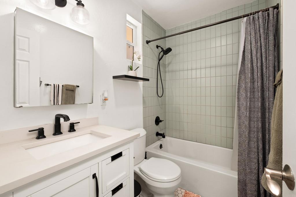 Tucked into a quiet cul-de-sac, this upgraded ground-level corner residence offers the perfect blend of privacy, comfort, and central convenience. With an abundance of natural light and an open, well-proportioned layout, the home feels both inviting and functional from the moment you walk in. Tastefully updated, the interior features hardwood flooring throughout, generously sized rooms, and ceiling fans in every space for added comfort. Central AC and heat ensures year-round efficiency. The kitchen has been refreshed with granite countertops, refinished cabinetry, and updated appliances, creating a clean and modern feel. Everyday living is made easy with an in-unit washer and dryer, along with a dedicated parking space and private storage closet. Residents also enjoy access to a community pool, perfect for relaxing on warm San Diego days. The HOA covers water, sewer, and trash, adding even more value and convenience. VA financing welcome, this is a great opportunity for a wide range of buyers looking for a well-located, move-in ready home.