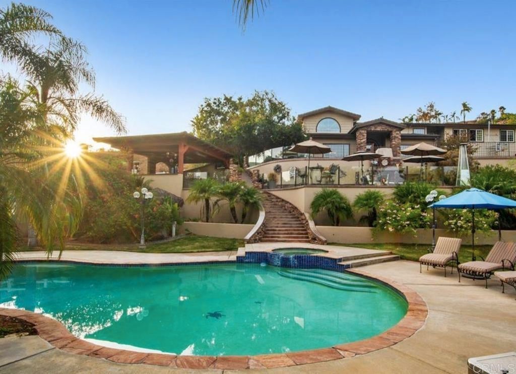 Welcome to one of Blossom Valley's most iconic estates — a beautifully designed, built, and meticulously maintained 6-bedroom, 6-bathroom masterpiece spanning 5,362 sq ft on a private, gated 2-acre lot. Every detail of this home reflects quality and intentionality, from the high-end finishes throughout to the thoughtfully curated amenities inside and out. The heart of the home is a newly upgraded gourmet kitchen featuring a Sub-Zero refrigerator and refrigerator drawers, Dacor ovens, Bosch dishwasher, quartz countertops, a large island, self-closing cabinetry, and a built-in trash/recycling system — all open to the family room for effortless entertaining. Each bedroom enjoys its own full en-suite bath, while an upstairs game room and study area offer ideal space for work and play. The primary suite is nothing short of extraordinary — a private balcony with stunning views and an above-ground spa, a two-way fireplace in the luxurious bath, dual vanities, soaking tub, dual showers, and a walk-in closet that truly has to be seen to be believed. Outside, the estate continues to impress. The sport court is lit for night play, and the outdoor kitchen is outfitted with Lynx appliances — grill, cooktop, ice maker, and dishwasher — plus a walk-in pantry perfect for entertaining. Covered RV parking accommodates a full-size motorhome and a 28-foot boat. The expansive 4-car garage features a handyman's dream workshop, dual EV charging stations, and abundant storage. A separate ADU/office provides the perfect flex space for guests, a home business, or multigenerational living. Owned solar panels keep energy costs in check. Behind the automatic security gate, this estate delivers a rare combination of seclusion, luxury, and functionality — just minutes from I-8 and all of San Diego's best.