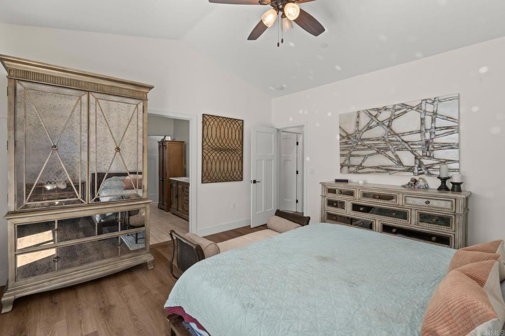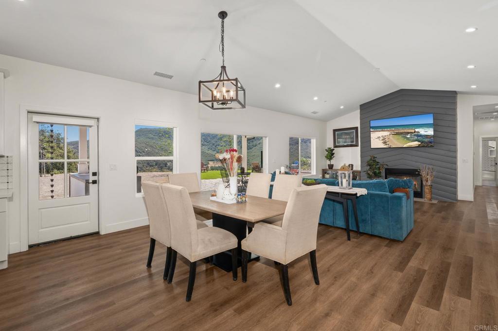 Price Adjusted Range: $1.19M - $1.239M Escape to your own modern farmhouse sanctuary, where unrestricted country living unfolds on nearly five usable acres. Overlooking serene valley and mountain views, this newer build offers endless possibilities with its valuable Agricultural-A70 zoning. Best of all—no HOA or Mello-Roos. Newly installed and fully owned: twenty-two hillside solar panels, paired with two Enphase IQ batteries—quietly cuts your electric bill. Perfect for both entertaining and easy living, the home flows from a bright, towering foyer into a great room where timber-type vinyl plank floors unite the living and dining areas. The space culminates in a chef's kitchen equipped with a six-burner ZLINE range, professional pot filler, Samsung appliances, decorative tiled backsplash, white shaker cabinets, a lengthy quartz island with bar seating and integrated microwave, and a farm sink with filtered water tap below a backyard-view window. Anchoring the great room, the wood-burning fireplace is set within a designer wood-paneled feature wall. Modern comforts and functionality include timeless slatted shutters, automated drapery, Vivint total home security system and perimeter cameras, a whole-house attic fan, and central AC for year-round cooling and heating. The thoughtful layout creates effortless living with two spacious bedrooms, a versatile bonus room, two contemporary finished baths, an accommodating laundry room, and a vaulted primary suite with twin vanity, walk-in closet, and a frameless glass rainfall shower encased with accentuated tile work. The oversized four-car garage is a hobbyist's dream, featuring tandem bays, durable epoxy flooring, and flexible space for a gym, workshop—you name it! The indoor-outdoor living space extends to a covered patio with built-in concrete BBQ station, overhead fans, and brand-new synthetic turf providing vibrant color and a play area for the kids. The warmth of a raised concrete gas firepit is paired with the pleasing sounds of a decorative fountain feature, all surrounded by puzzle-piece pavers connecting the front and back yards. Stretching out, the driveway includes a Tesla charger and sufficient space for an RV, boat, and numerous vehicles. Enjoy the perfect blend of peaceful country living and S. Valley Center convenience, with San Diego's iconic Bates Nut Farm just down the street and local shopping and amenities just a short drive away. Schedule your private showing today!