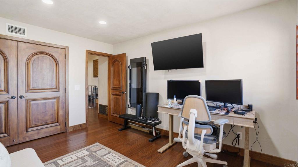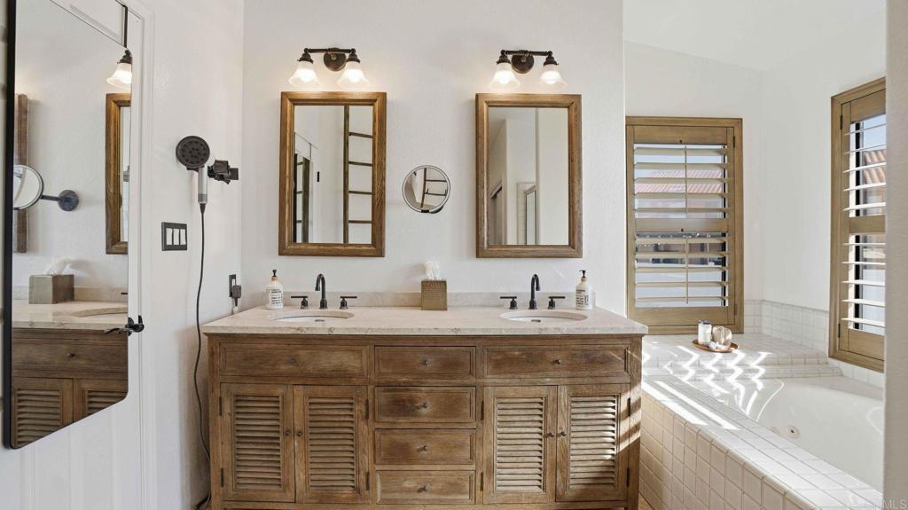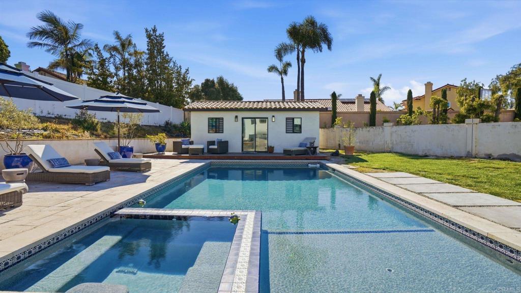 Welcome to this stunning custom rustic Spanish-style home, located on a quiet cul-de-sac in one of Bonita’s most desirable neighborhoods. This 5-bedroom, 3-bathroom home has a detached casita with its own bathroom and kitchenette—perfect for guests. Thoughtfully enhanced throughout, the home features dual-pane windows, updated wood and tile flooring, remodeled bathrooms, smooth textured walls, and added ceiling and closet lighting. Other upgrades include solar panels, HVAC, plumbing, water heater, whole house fan, garage doors, fencing, gates, retaining wall, refreshed landscaping, and added irrigation. Additional touches include custom interior wood doors, closet organizers, and French doors. Enter through distinctive front doors into a welcoming family room centered around a cozy fireplace. The kitchen, with stainless steel appliances, concrete countertops, and generous cabinetry, flows seamlessly into the living area with its own fireplace. Expansive accordion-style doors open to the backyard, creating effortless indoor-outdoor living. A main-level full bathroom adds convenience. Upstairs, you'll find the remaining bathrooms and bedrooms including a spacious primary suite with fireplace, private balcony, and en-suite bathroom—ideal for relaxing at the end of the day. The backyard is designed for entertaining, with a saltwater pool with pebble tec, BBQ island, and a large grassy area. Additional highlights include a dedicated laundry room, 3-car garage, ample driveway parking, and potential to expand with an additional primary suite. This home offers a perfect blend of comfort, style, and lifestyle. Don't miss out on this home!