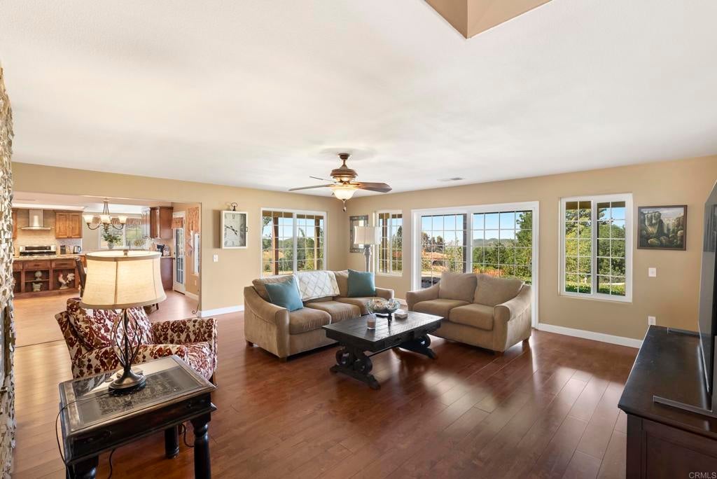 Wonderful retreat style home situated on 2.36 acres in the scenic hills of Jamul, this exceptional horse property at 13658 Sage Mountain Lane offers the perfect blend of rural tranquility and modern comfort. City close, country quiet!! Views, Views, Views!! Set on expansive acreage with breathtaking panoramic hillside views! This residence features a warm and inviting layout with abundant natural light, spacious living areas, downstairs bedrooms and bathrooms and seamless indoor-outdoor flow. Totally remodeled kitchen with granite counters, extensive cabinetry and stainless steel appliances. Upstairs features stunning primary suite with balcony area to enjoy views, an oasis style bathroom, walk in closet and so much more! Additional highlights include privacy, usable land, and convenient access to nearby amenities while maintaining a serene, country lifestyle. This is a rare opportunity to own a slice of Jamul’s coveted countryside—ideal for equestrians, outdoor enthusiasts, or anyone looking to escape the city and embrace wide-open spaces. Hurry this Jamul beauty won't last!!
