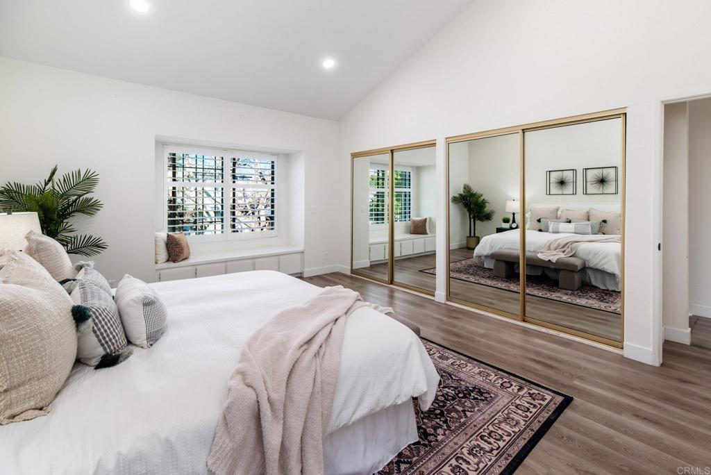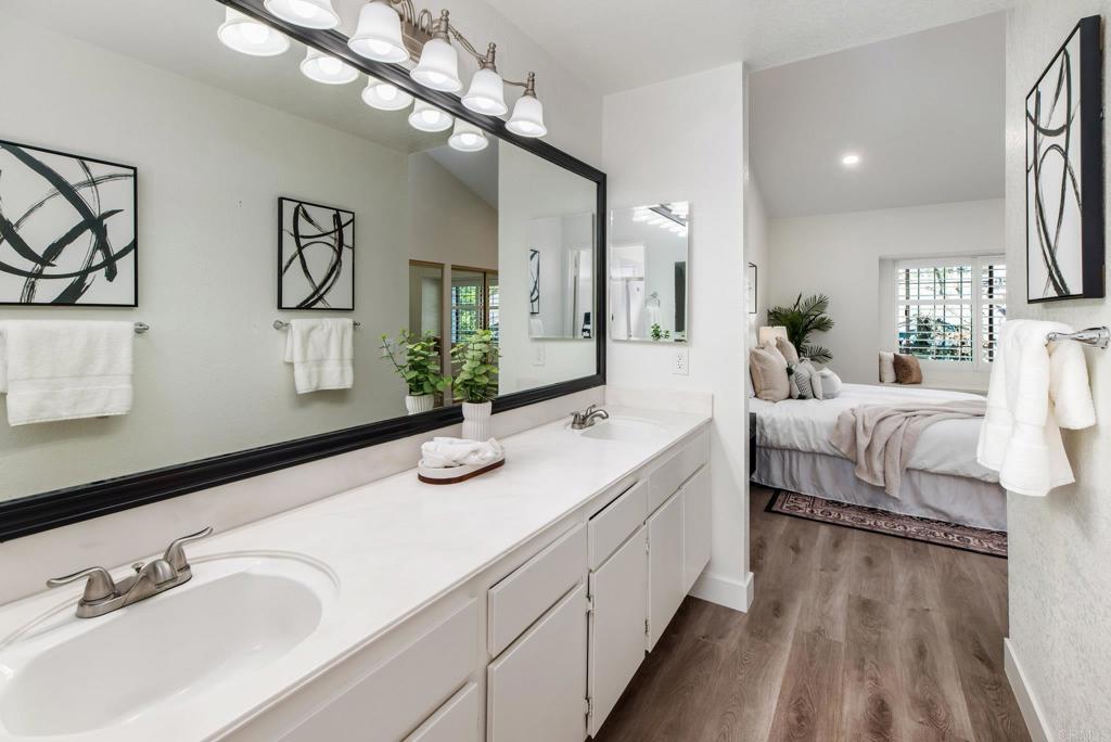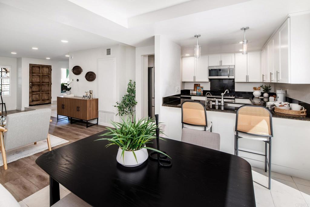 Set within the highly desirable La Jolla Village Park community where La Jolla meets University City, this bright and inviting townhome-style residence offers the privacy and feel of a true home, not the typical apartment-style condo. Elevated within the community, the home is filled with natural light on both levels, creating an open and welcoming atmosphere throughout. The thoughtfully designed layout features two generous bedroom suites, each with its own private bathroom, plus a convenient guest powder room on the main level. Vaulted ceilings upstairs enhance the sense of space, while the guest suite opens to a large private patio, perfect for enjoying San Diego’s indoor-outdoor lifestyle. The expansive main living area offers remarkable flexibility with room for a home office, reading nook, play area, or creative space depending on your needs. The kitchen connects easily to the private back patio, creating convenient access to the home’s detached one-car garage located just steps away, making grocery runs and everyday living effortless. The patio also leads to a dedicated laundry and utility room with ample storage space and the opportunity to create your ideal laundry setup. Additional storage has been thoughtfully added beneath the stairs and within the garage with built-in overhead space. The home has been updated over time with vinyl flooring, shaker-style cabinetry, bright white paint, and recessed lighting throughout, creating a clean and move-in-ready feel. Residents of La Jolla Village Park enjoy a low HOA fee while still having water, trash, sewer, exterior, roof and landscaping covered as well as beautifully landscaped green spaces and an unbeatable central location just minutes from everything University City, UTC, and La Jolla have to offer, including shopping, dining, beaches, parks, and major employers.