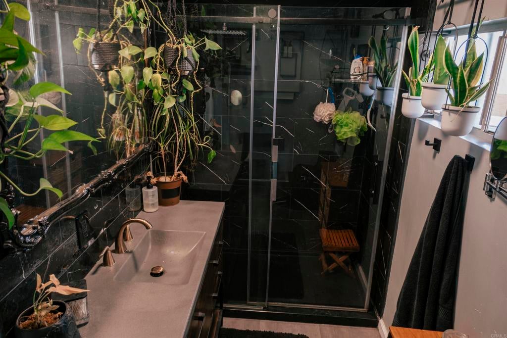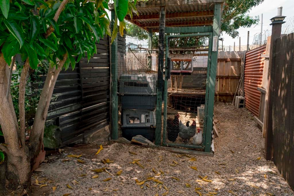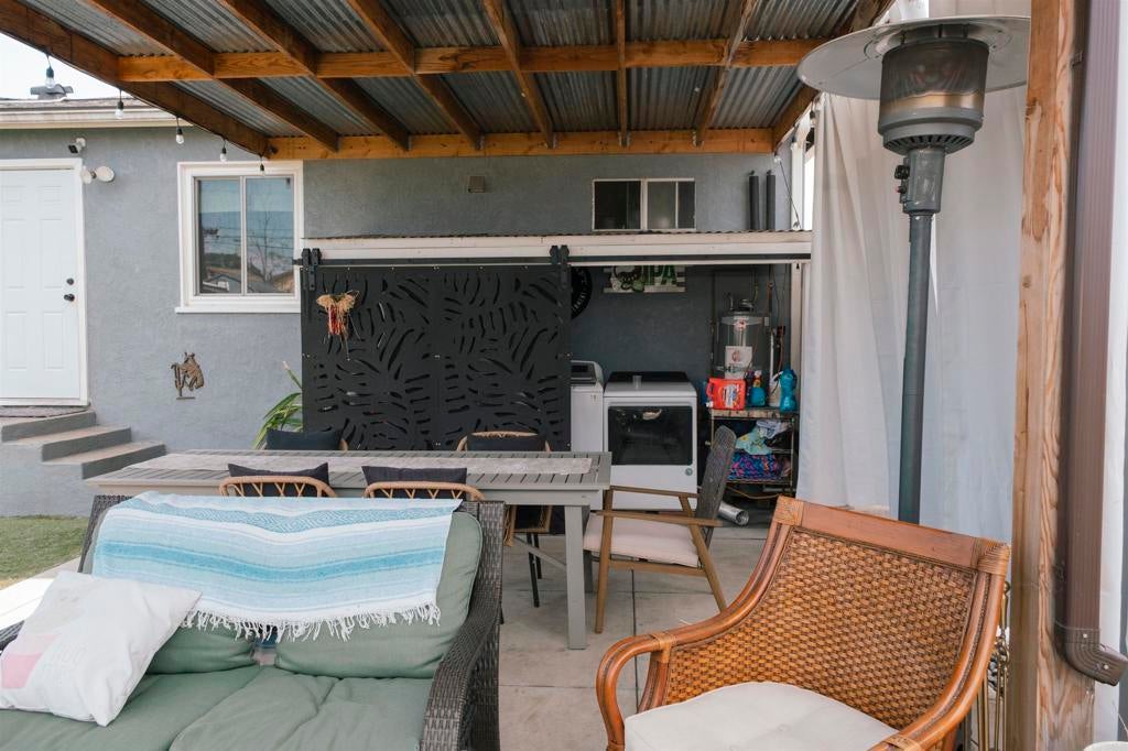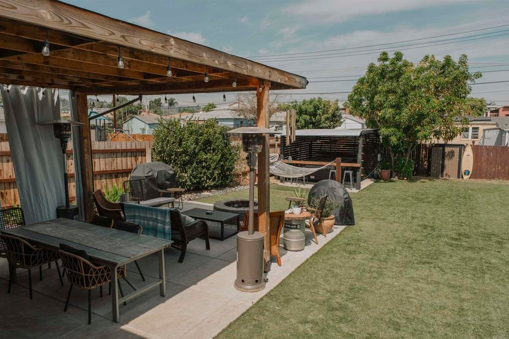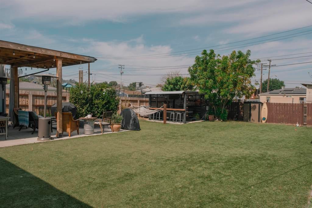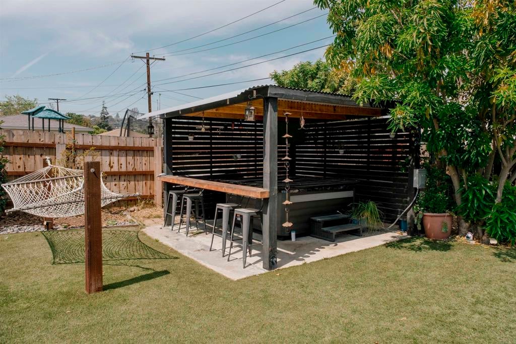 Charming single-story home in El Cajon featuring 3 bedrooms and 2 bathrooms with a desirable split-bedroom floor plan. The spacious primary suite offers comfort and privacy, complemented by two additional spacious bedrooms. Recently remodeled, the primary bathroom showcases a 60-inch walk-in shower, waterproof laminate flooring, updated plumbing fixtures, and real bamboo flooring. The upgraded kitchen features granite countertops, a deep sink, new lower cabinetry, Whirlpool appliances, upgraded tile flooring, and updated plumbing. Energy-efficient improvements include 15 owned solar panels, a newer asphalt shingle “cool roof,” mini-split HVAC system, upgraded electrical panel, dual-pane windows, and new front and rear exterior doors. Additional upgrades include GFCI protection in the kitchen and bathrooms and an RV hookup with a 50-amp breaker. The private backyard is designed for outdoor living and entertaining, offering a covered patio, wood-burning fire pit, approximately 2,000 sq. ft. of turf, and a covered gazebo with its own 50-amp breaker. The property also features new fencing, a 10' x 12' Tuff Shed, a 5' x 3' metal storage unit, and a functional chicken coop. This well-maintained home combines comfort, efficiency, and versatility—perfect for low-maintenance living with room to grow.