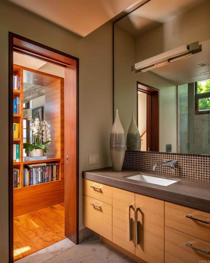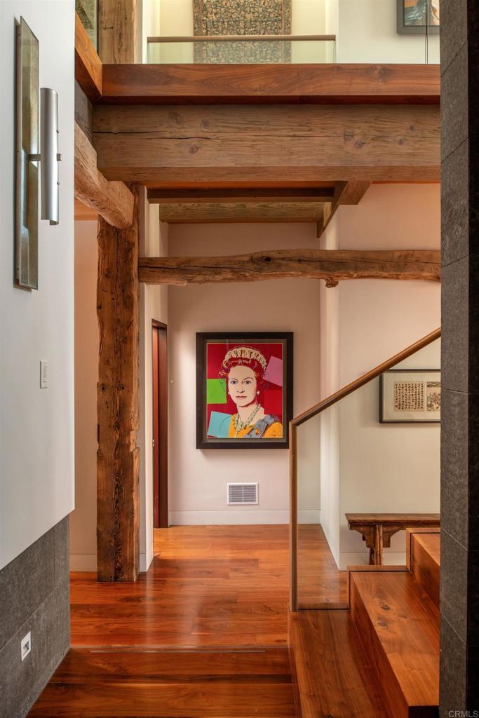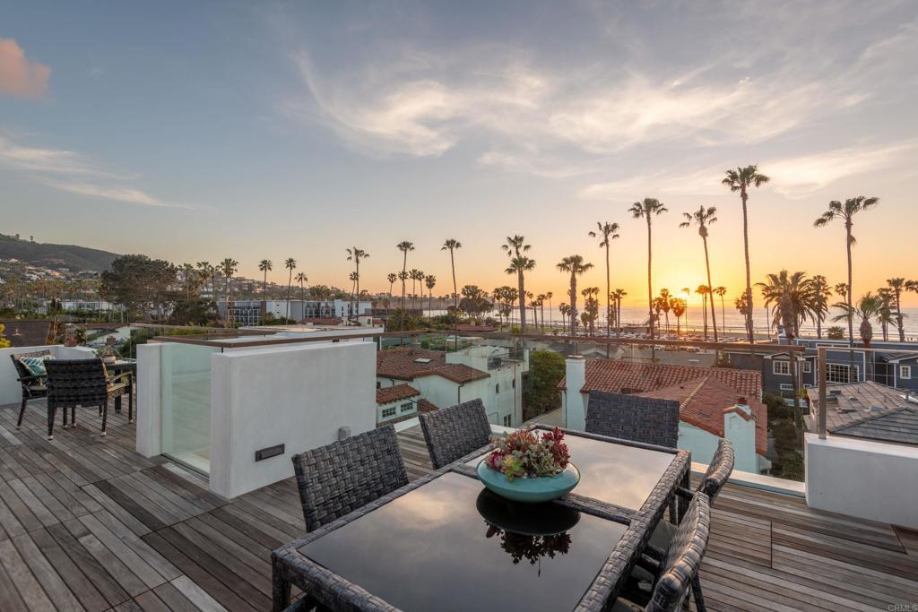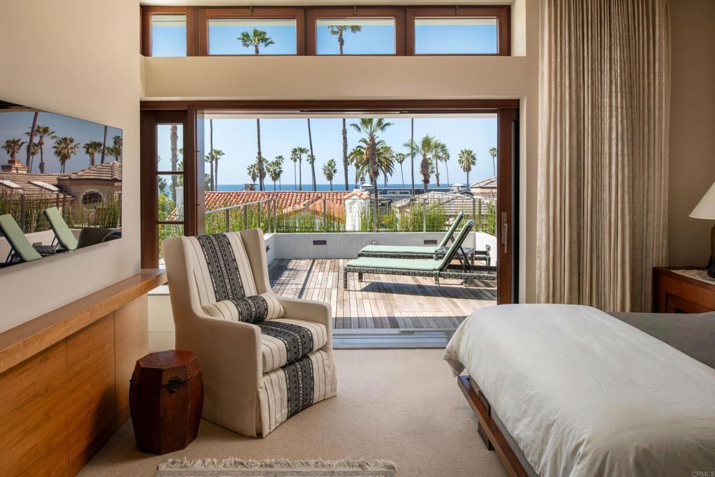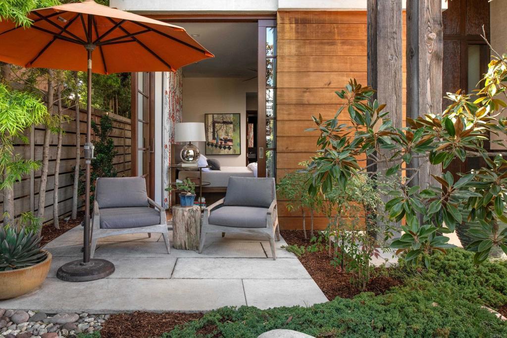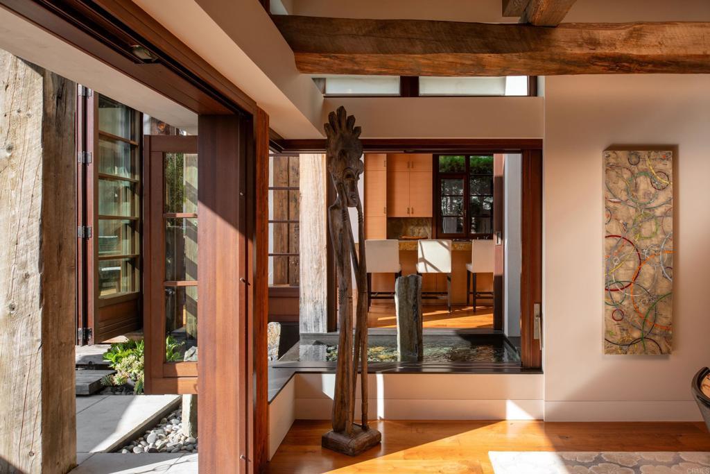 Come live the La Jolla lifestyle in this ocean view architectural masterpiece! A rare fusion of refined architecture, natural materials, and tranquil design, this exceptional ocean-view residence is a work of art that graced the cover of San Diego Home and Garden magazine. Thoughtfully designed by Laura DuCharme Conboy to engage the senses, the home blends contemporary luxury with timeless craftsmanship and Zen-inspired serenity. Just inside the gates is a Japanese garden designed by Dennis Otsuji, one of the original Japanese Friendship Garden designers, creating a peaceful, meditative backdrop that elevates everyday living. Throughout the home, natural walnut, flamed basalt, and stone surfaces are complemented by vintage posts and beams, delivering warmth, texture, and authenticity. The residence features custom-built cabinetry throughout, Mahogany Albertini Italian windows, and seamless indoor-outdoor flow. Entertain effortlessly with an 11-zone audio system, video switching, Control4 home automation, and programmable scene lighting. The gourmet kitchen is equipped for the discerning host, featuring a full-height Sub-Zero wine refrigerator with dual beverage drawers, a built-in Miele espresso and coffee system, and premium finishes throughout. Comfort meets ambiance with an automatic gas indoor fireplace, while outdoor living is enhanced by a gas fire feature, tranquil water fountain, and outdoor shower. Ascend to the large (over 400 square feet) roof deck, where white water views and a 180-degree ocean vista awaits. The deck is served by a dumb waiter from the kitchen below and has a built-in gas barbecue, counter, and sink, making it the ultimate entertaining destination. Additional outdoor spaces include second-floor decks off the den and primary bedroom, both offering privacy and ocean views, as well as a private space outside the primary bathroom, all thoughtfully illuminated by automatic low-voltage outdoor lighting. Sustainability meets luxury with solar electric panels, completing a home that is as forward-thinking as it is breathtaking. This home, built by Wardell Builders, is not just a residence—it’s a carefully crafted coastal retreat!