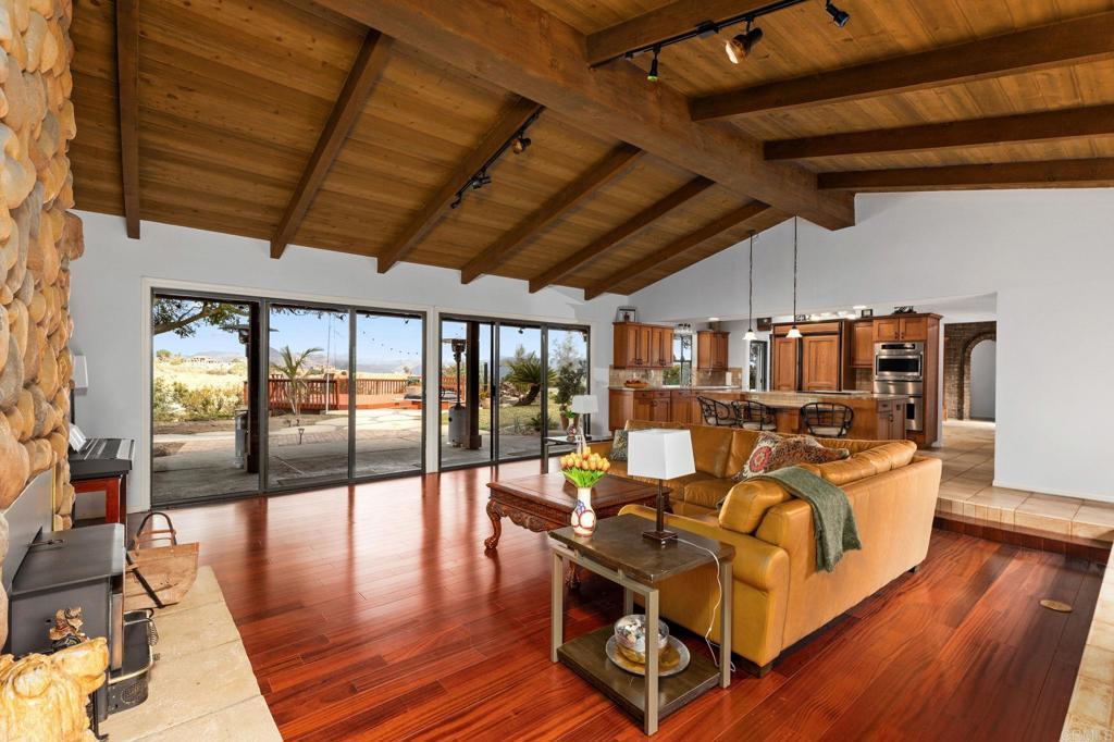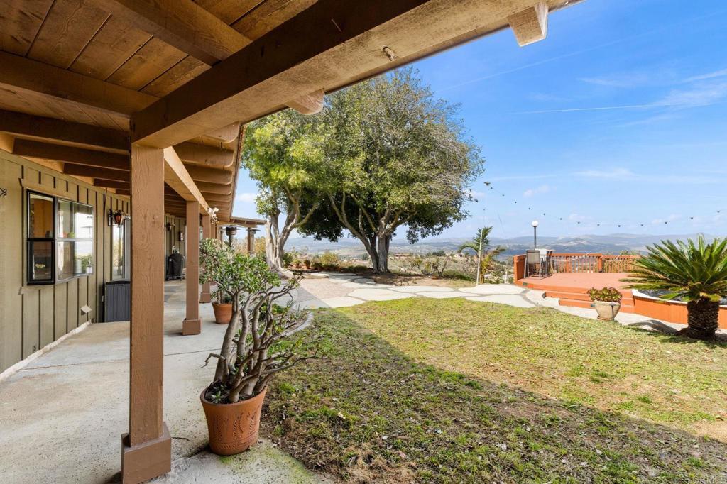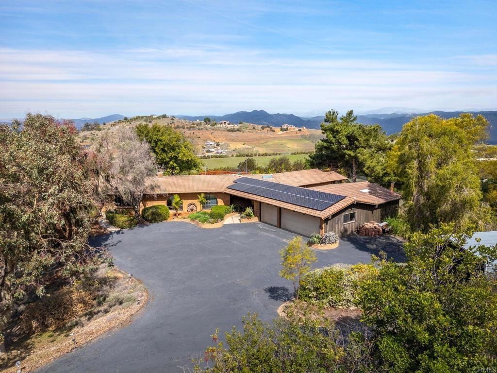 Welcome to Highland Valley Wine Country! Nestled in the rolling hills of Escondido's renowned wine country, this breathtaking 4.5 acre property offers a rare opportunity to own a custom-built adobe home with stunning unmatched panoramic views that stretch across the valley and beyond. Surrounded by over 200 thriving avocado and fruit trees, including graperruit, limes, oranges, persimmons, and mangoes, this property is a dream for those who appreciate privacy, nature, and the potential for hobby farming. The single-story home boasts four spacious bedrooms, two bathrooms, and a dedicated game room/office attached to a three-car garage perfect for a potential in-law suite or guest retreat. Gorgeous wood beam ceilings add character and warmth to the family room, dining area, and game room. The primary suite is privately situated on one side of the home, offering a peaceful escape. Recent upgrades include a new roof, a fully paid-off solar panel system for energy efficiency, and a brand-new AC unit- ensuring comfort and savings for years to come. This property is an entertainer's paradise with endless expansion possibilities-add an ADU, a pool, or a private spa to elevate your lifestyle. Imagine hosting guests while watching stunning sunsets and sparkling night skies from your secluded retreat. Located just steps from Cordiano Winery, you can enjoy world-class wine and dining right in your backyard. Plus, with a new roof and an extensive solar power system, this home is energy-efficient and ready for its next owner. Don't miss this rare opportunity to own a slice of San Diego Wine Country-schedule your private tour today!