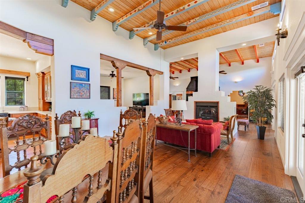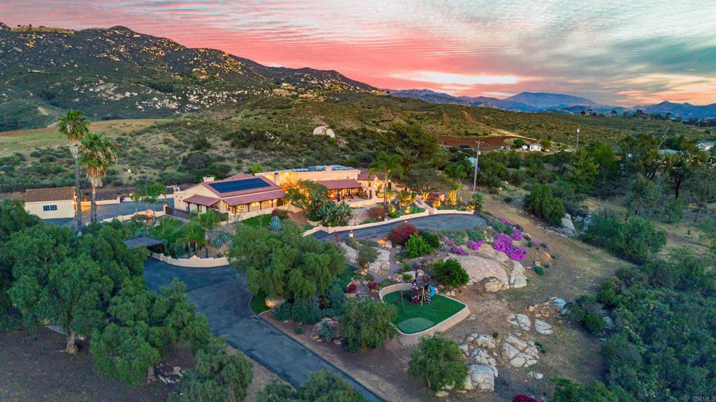 Welcome to a private hillside estate in Jamul set on approximately 5 acres, featuring a single-story custom Spanish-style home with 4 bedrooms, 4 bathrooms, and approx. 3,263 sq. ft. Originally built in 1992 and renovated in 2017, the home offers quality craftsmanship, timeless character, and unique artistic details throughout. High ceilings, abundant natural light, and a functional open layout create an inviting atmosphere ideal for both everyday living and entertaining. The well-appointed kitchen includes high-end appliances, while spacious living areas and multiple dining spaces enhance comfort and versatility. The primary suite features a two-way fireplace, adding to the home’s relaxing ambiance. The expansive property offers privacy, scenic surroundings, and room for outdoor enjoyment, with patios and open space ideal for entertaining or quiet retreat. A detached garage/art studio with a bathroom provides additional flexibility. Solar, well water, and septic support a more self-sufficient lifestyle. Conveniently located near Rancho San Diego shopping, dining, schools, freeway access, and approximately 23 miles from downtown San Diego. A rare opportunity to enjoy private estate-style living with accessibility to city amenities.