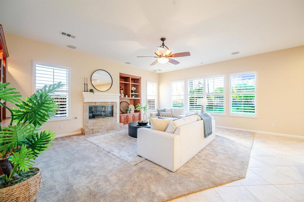 This is the perfect home offering the perfect combination of comfort, efficiency, and resort-style outdoor living. This thoughtfully maintained property located on an expansive .48 acre lot featuring a fully owned solar system with a large storage battery, 2 upgraded air condition units with one of the units upgraded with a hospital grade electrostatic air filtration system, whole house fan, and numerous energy-efficient improvements designed to maximize comfort while helping reduce utility costs. The inviting floor-plan features a spacious family room with custom built-ins, surround sound speakers, and a cozy fireplace, creating the perfect space for relaxing or entertaining. The kitchen is well appointed with stainless steel appliances, recently updated cooking appliances, reverse osmosis drinking water system, soft-close cabinetry, and under-cabinet lighting. The primary suite offers a true retreat with dual walk in closets, double sinks, a dedicated vanity area, jetted soaking tub, separate shower, and generous storage. Buyers will also appreciate the three additional generously sized bedrooms plus a dedicated office, ideal for today’s flexible lifestyle needs. Two of the secondary bedrooms are connected by a convenient Jack & Jill bathroom, while the third bedroom features its own private en-suite bathroom, perfect for guests or multigenerational living. Additional highlights include plantation shutters, new carpet, separate wine room with dual refrigerators, built-in cabinetry, EV charger, and extensive storage throughout. Step outside to a large private backyard designed for enjoyment featuring a built in water fountain, mature landscaping, multiple fruit trees, outdoor seating area perfect for a fire pit, barbecue island, Alumawood pergola, expanded paver courtyard, and landscape lighting, perfect for entertaining or enjoying peaceful evenings. With major system upgrades already completed, a highly functional layout, and clear pride of ownership throughout, this is an opportunity you will not want to miss.