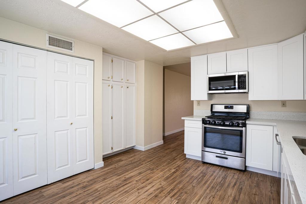 New kitchen cabinets & countertops, new flooring, new paint, & new water heater. This home just needs a new owner! Check out this 2 bedroom, 2 bathroom condo with a private, fenced in backyard, all in a gated community. Need space to park the truck? It has a 2 car garage with attic space & storage shelves. Kitchen is light & bright with brand new cabinets and countertops that have NEVER been used. New flooring in kitchen, living room, and hallway was just installed. The bedrooms are on opposite sides of the hallway with upgraded, mirrored closet doors and there's full size, side by side, washer & dryer IN UNIT. Community HOA is $360 a month which includes water, trash & community landscaping. Plus visitor parking spaces inside and out of the gate. This is the one. Great home in a really nice community. Make an appt to tour it today!!
