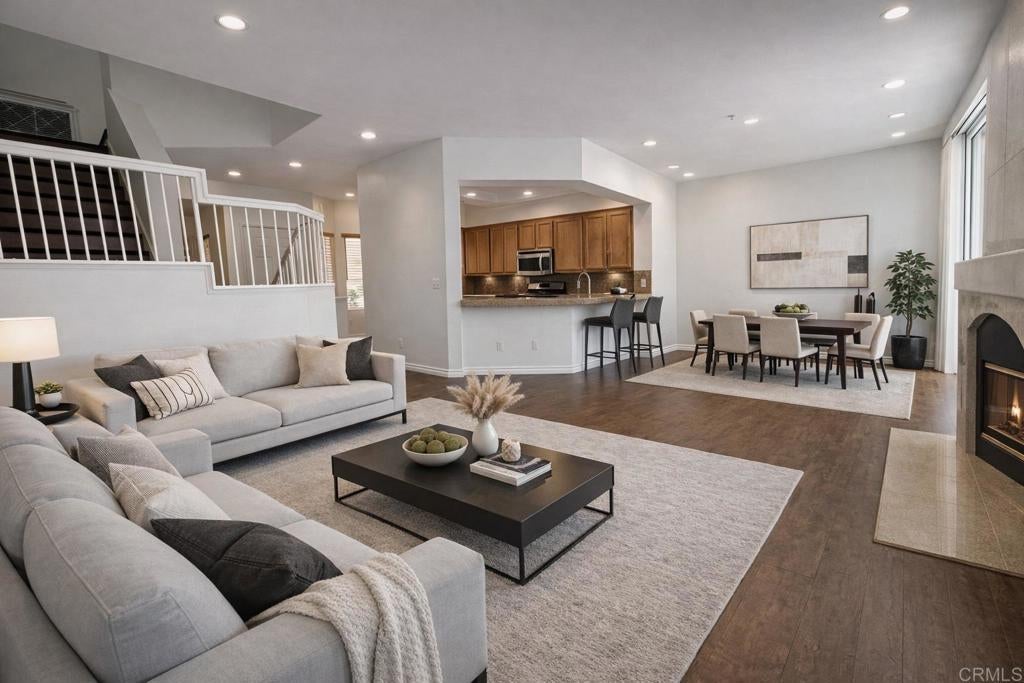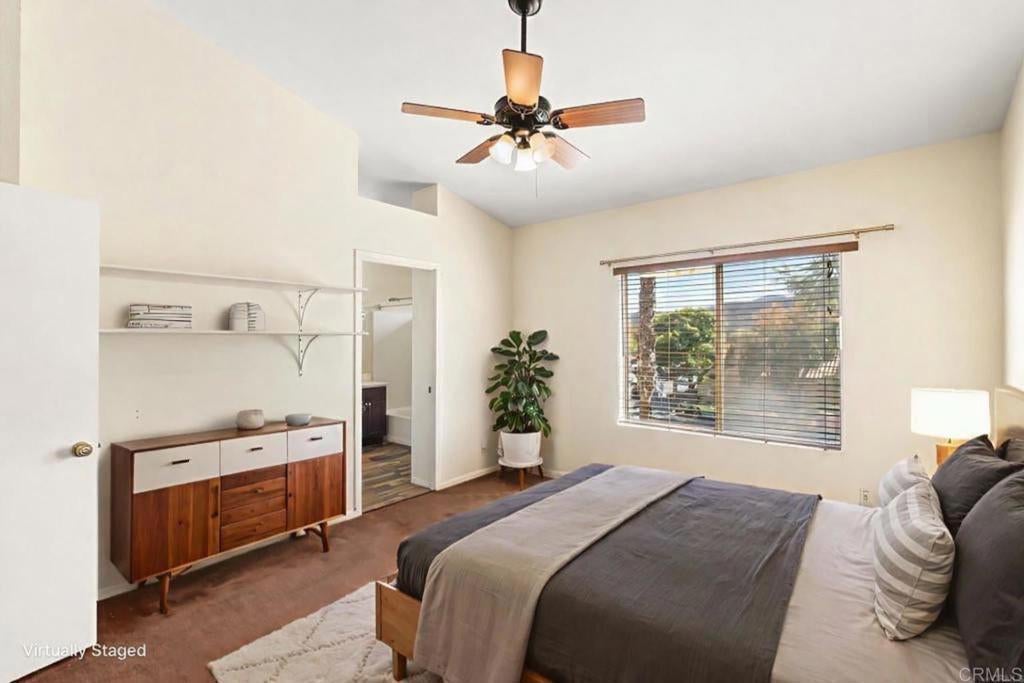 Spacious 2-bedroom, 2.5-bath townhome in the heart of Rancho San Diego. This two-story home features an open eat-in kitchen with granite countertops, a separate dining area, and a bright living room with high ceilings and a cozy fireplace. Downstairs, you’ll also find a convenient half bath, dedicated laundry room, and direct access to the attached 1-car garage. Upstairs offers two private bedroom suites, each with its own full bathroom and vaulted ceilings, creating an ideal layout for roommates, guests, or added privacy. One suite includes a walk-in closet, and the home also offers multiple storage areas plus a flexible space that can work well as a small home office. Outside, enjoy a large private patio, while the community pool and spa are just steps away. Located in a well-kept complex close to schools, restaurants, coffee shops, shopping, and hiking trails, this home offers comfort, convenience, and a fantastic Rancho San Diego location.