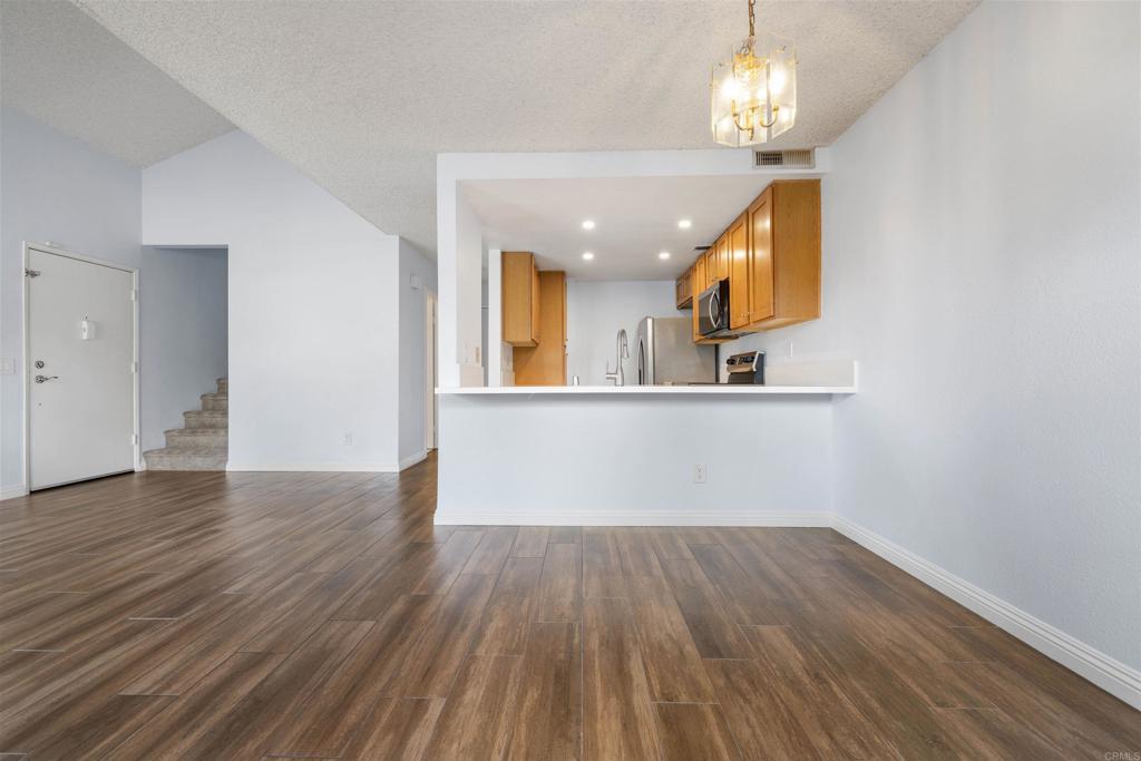Welcome to 5440 Baltimore Dr #141, a bright and well-maintained two-story townhome in the heart of La Mesa. Vaulted ceilings and large windows fill the living room with natural light, while warm wood-style flooring creates an inviting feel. The kitchen features rich wood cabinetry, white countertops, stainless steel appliances, and a breakfast bar that opens to the dining area with access to a private patio. Upstairs offers spacious bedrooms and updated bathrooms with modern finishes. Complete with an attached two-car garage and convenient access to shopping, dining, Lake Murray, and freeways, this home blends comfort and location perfectly.