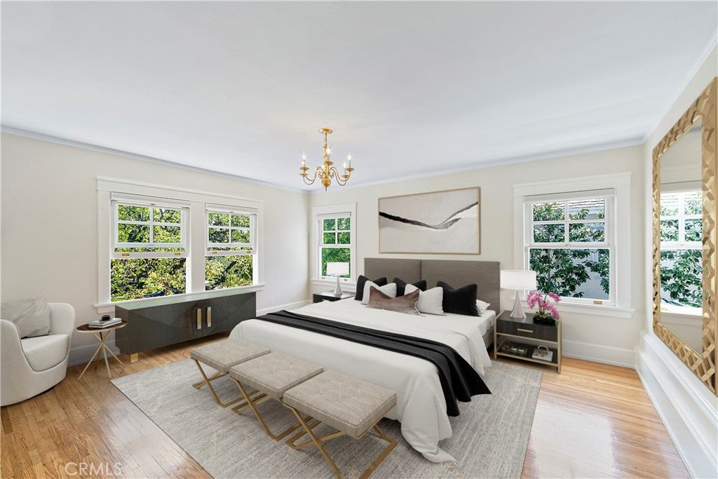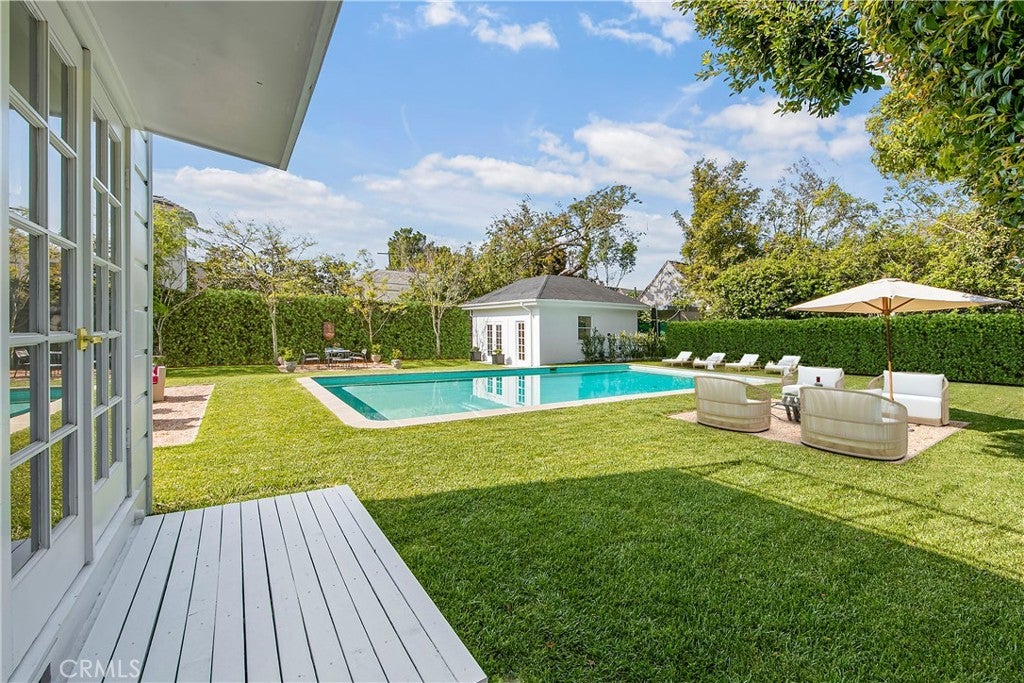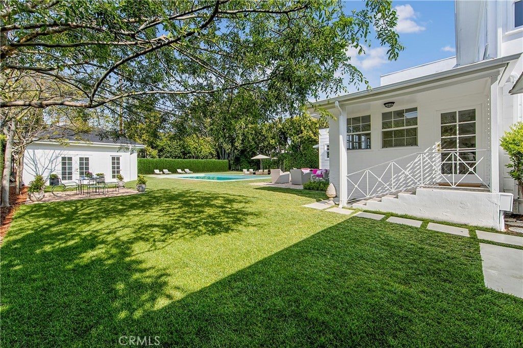 ALL NEWLY RENOVATED AND MOVE-IN READY! This breathtaking 5 bedroom, 4+ bathroom estate with 2-car garage sits upon an ultra-luxe 13,525 square ft. (.31 acres) lot and is conveniently located within short-walking distance to the prestigious Marlborough School and vibrant Larchmont Village. On the market for the first time in over 50 years, this freshly renovated, historic 1927 Georgian style estate located in highly coveted Windsor Square in Hancock Park. Designed by well-known Windsor Square architect Robert D. Jones, this gem is ideally situated behind mature magnolia and pear trees and accented with wood siding and white brickwork. Honoring the property's historical and architectural integrity, every inch has been meticulously restored. Renovations include ALL-NEW custom landscaping, lighting, and irrigation, ALL-NEW driveways and walkways, ALL-NEW plumbing throughout the house and an ALL-NEW main sewer line to city street, ALL-NEW electrical throughout the house and a 400-amp main panel and subpanel in basement, ALL-NEW heating and air conditioning systems with enhanced capacity, ALL-NEW Thor Kitchen appliances, ALL-NEW ADT Security System, along with refurbished original wood windows and a combination of original period classic and new wide-plank honey toned oak flooring, this gorgeous estate epitomizes old-world elegance with a perfect blend of modern lifestyle spaces and conveniences. All of the rooms are filled with sunlight and overlooking the elegant front garden and estate scale rear lawn, bright blue pool and manicured garden spaces. Outside, well-proportioned conversation spaces surround the pool, in conjunction with lush expanses of lawn up to the edge of the pool and immersed in rose and star jasmine-filled aromas that create a classic setting to entertain, play or relax amidst the serene private garden. Anchoring the grand rear garden area, and unique to most residences in Windsor Square, is a detached guest house with a Certificate of Occupancy and complete with ½ bath, that can be adapted to any number of creative designs from home office to exercise studio. Additionally, at the front of the residence is a separate two-car garage enhanced with ample side-by-side space in the driveway for 4 additional cars. This home was featured in Matthew Broderick’s 1983 film “War Games”.