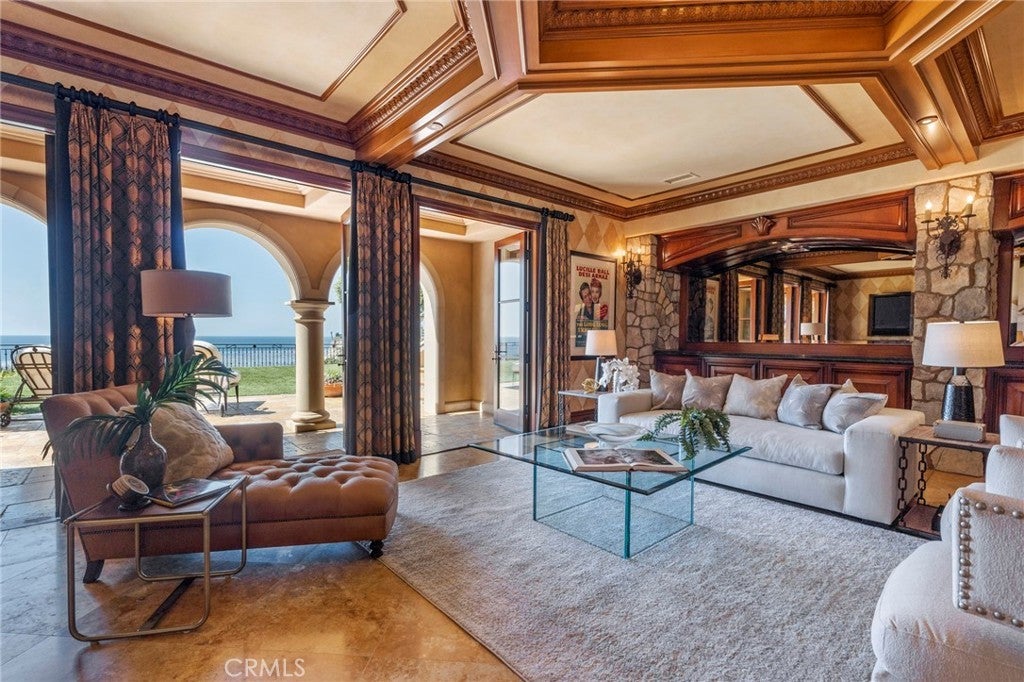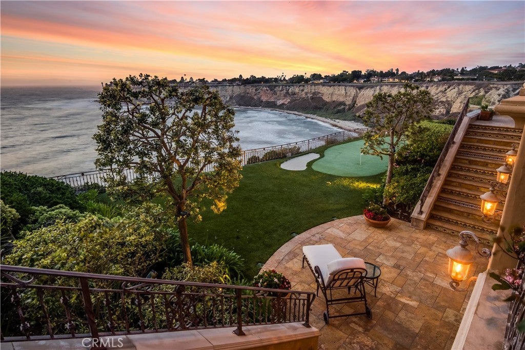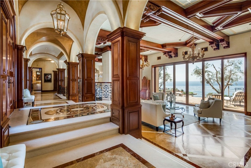The edge of the California coastline… where the Pacific Ocean is your backyard. With over 200 feet of magnificent oceanfront, the panoramic views are unrivaled. This private, bluff-top estate offers world class amenities including disappearing doors that seamlessly blend the indoors and out. Soaring ceilings, generous sized rooms and luxurious finishes provide a rarely found ambiance with both comfort and grandeur. The entry level includes multiple living spaces, four en-suite bedrooms, (including a spectacular primary suite) a handsome office, and a gourmet kitchen. The lower level includes a secluded fifth bedroom, incredible “game room”, a temperature controlled wine cellar, a spectacular gym with sauna, and a 9-car garage! The enchanting backyard features a saltwater infinity edge pool & spa, putting green, BBQ, fireplace, koi pond and expansive patios. Whether entertaining 100 or quietly relaxing alone, this home is your sanctuary.