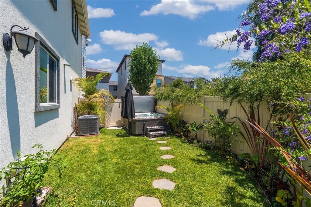 THE ONLY RESIDENCE IN THE VILLAS AT HARBOR POINTE WITH A CUSTOM IN-GROUND POOL! This standalone home offers an exceptional combination of privacy, luxury, and family-friendly living. Located on a quiet cul-de-sac with no neighbors on either side, it provides a peaceful retreat within the gated community. This home is an unmatched value in price and in one-of-a-kind features. Inside, the open and sunlit floor plan features high-end finishes including stainless steel appliances, quartz countertops, laminate wood flooring, and custom plantation shutters. Central air conditioning ensures comfort year-round. A whole-house water filtration system with reverse osmosis provides clean, refreshing water throughout. Enjoy the private side yard with your own private SPA Jacuzzi while you gaze at the lush grass and floral landcaping that complements the seamless indoor/outdoor flow. Controlled gate access and a two-car garage add convenience and security. With multiple bedrooms designed to accommodate family living, plus community amenities like BBQ's, grassy parks, a playground, and a dog park for the community, this home combines a tranquil setting with easy access to freeways, shopping, and hospitals. You literally just need to bring your toothbrush and you're home.
