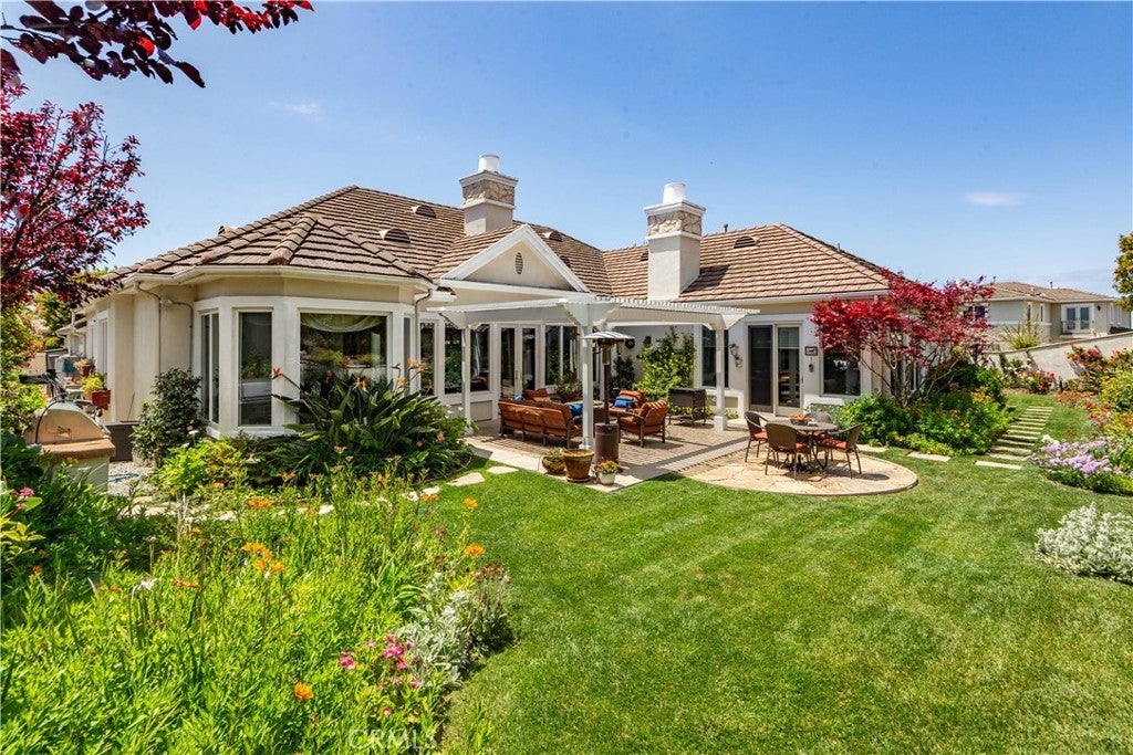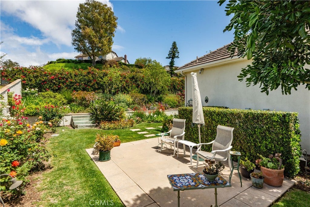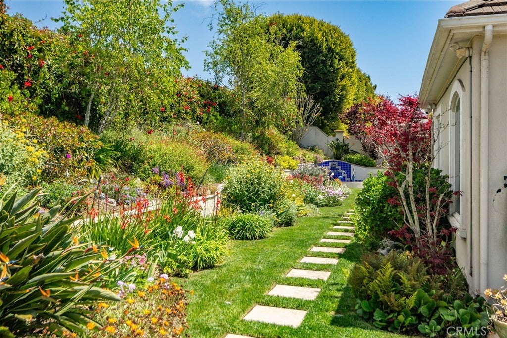 RARE OPPORTUNITY! First time on market in 25 years, beautifully maintained with pride of ownership from the original owner! Your chance to own and enjoy this single-level luxury turn-key residence nestled in the prestigious guard-gated community of Vantage Pointe. This exquisite property, one of only 67 homes in the development, offers 4 bedrooms and 3 ½ baths in 3,334 square feet of living space on a 16,962 sq ft oversized flat lot, located on a quiet cul de sac. Upon entering, you'll be greeted by an inviting open floor plan with high ceilings throughout. Straight ahead is the spacious living room featuring elegant custom coffered ceilings, hardwood floors, a fireplace, and large windows that fill the space with natural light, creating a warm and welcoming atmosphere. Off the living room is a sitting room, with the same hardwood floors, and shares the back side of the fireplace. French doors from the living room open to a back patio with a recently-built pergola with portable fire pit, a built-in BBQ, lawn area and beautifully manicured garden, and a tranquil fountain – perfect for outdoor entertaining. From the entry foyer, to the left, after passing the guest powder room near the entry, are the private living quarters featuring three well-appointed bedrooms, including an optional office, and a secluded luxurious master suite. Two of the bedrooms share a Jack-and-Jill bathroom for added convenience. The primary suite is secluded, while taking advantage of the beautiful backyard, and features two giant walk-in closets, access to the back patio, a fireplace, and an en-suite bathroom with dual vanities, a walk-in shower, a jacuzzi tub, and a separate toilet room with a bidet. Off the entry foyer and living room area, the gourmet kitchen is a chef's dream, equipped with two ovens, two microwave ovens, two dishwashers, a Sub-Zero refrigerator, ample cabinetry, and granite counters, and includes a separate breakfast nook overlooking the backyard. Off the kitchen is a dedicated laundry room with sink and storage, that leads to the 4-car garage, with plenty of cabinets for storage, and includes a workbench. The home includes a 6-camera security system and whole-home water filtration system. This exclusive community is conveniently located near stores, Golden Cove Shopping Center, Terranea Resort, and world-class golf and tennis clubs. Schedule a private tour today to experience the exclusivity, luxury and comfort that 48 Santa Cruz has to offer.