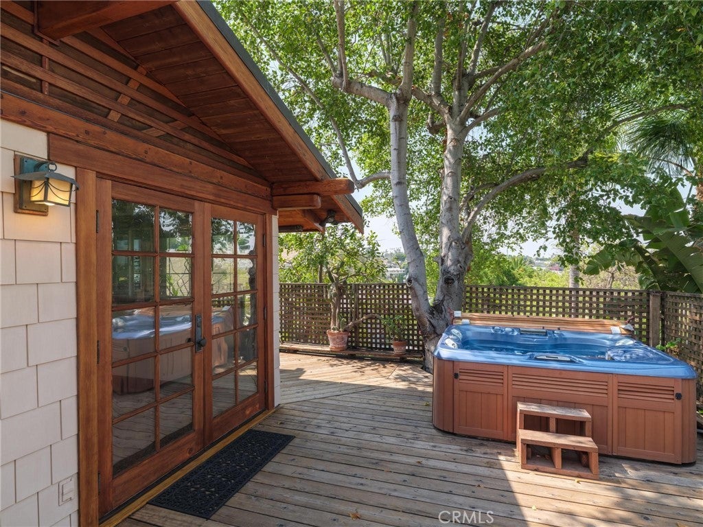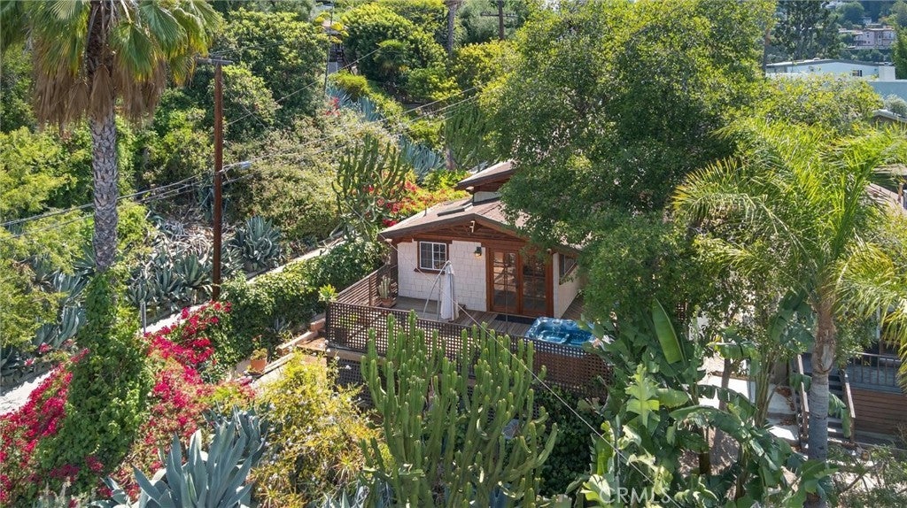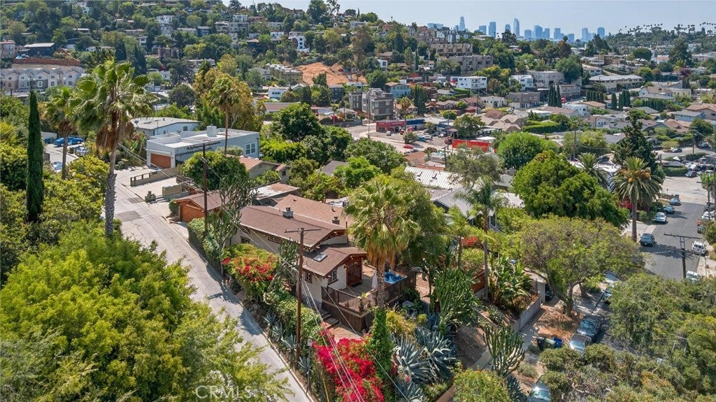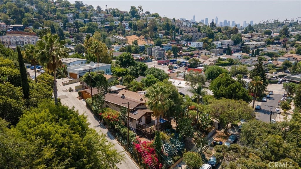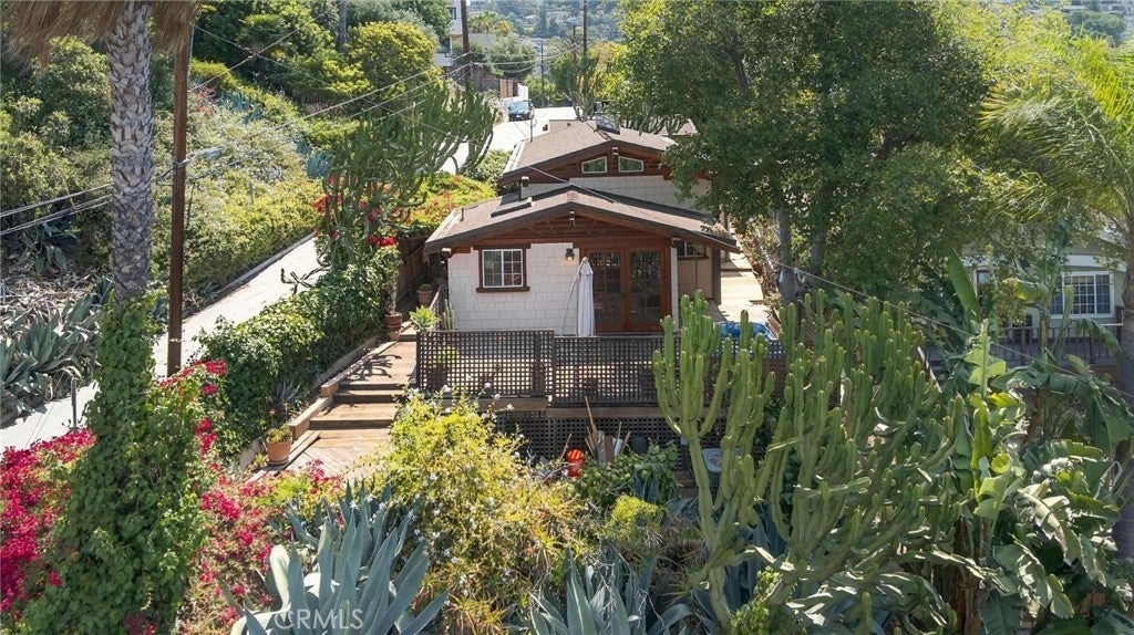 Offered for the first time in almost 50 years, this is an architectural gem located in the coveted Franklin Hills of Los Feliz. A one-of-a-kind true craftsman home, this home was designed by esteemed LA architect Kenneth Lind, inspired by the iconic Gamble House and the historic works of architects Greene and Greene. This home offers privacy, views, unmatched character and impeccable craftsmanship. Upon entering you are surrounded by decades of mature growth and varieties of beautiful succulents and towering cacti. Built with the highest quality of materials in every detail, with solid oak, douglas fir, and redwood throughout. Diagonal oak hardwood floors warm the house, while handmade solid douglas fir doors with hammered bronze knobs, tie the house together. The living room is anchored by a river rock fireplace, while stained glass art fixtures and artistic tile reliefs add rich detail throughout. Natural light floods the house throughout the day. Slate stone floors welcome you into the bathroom comprised of hand-crafted tiles, a clawfoot tub, and a multi-showerhead walk-in with brass fixtures. Some additional features for modern comfort include central heat and AC. Closets lined with pristine cedar planks, storage nooks, and Elfa shelving. A second bedroom offers a large walk-in closet with plumbing for a potential second bathroom. The exterior of this magnificent home displays impressive woodworking craftsmanship, hardy board siding, and copper gutters and downspouts. Up on the chimney sits the vigilant owl, perched to keep watch over this jewel of a home. Enjoy city and sunset views from the wrap-around wooden deck, or soak in the jacuzzi under the trees. A newly constructed retaining wall, with 4-foot diameter pylons drilled 15+ feet deep into bedrock (buyer to verify details), provides structural integrity and peace of mind. The detached two car garage reflects the same level of artisanal detail as the main residence, with custom high length wood beams, both beautiful aesthetically, and structurally sound. Walkability to restaurants, night life, grocery stores and Sunset Junction. Perched high above the street for ultimate privacy, yet minutes from Griffith Observatory, The Greek Theater, Hollywood Bowl, and countless restaurants and cultural hotspots. This is a once in a generation opportunity to own an irreplaceable piece of Los Angeles history, one which could never be replicated today.