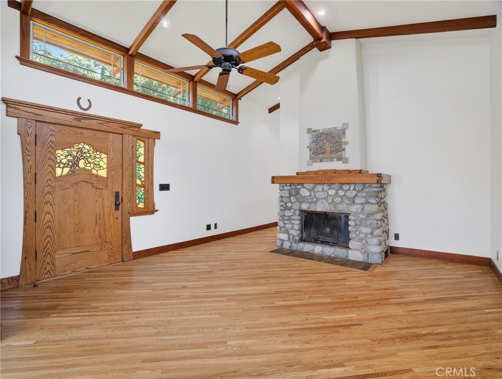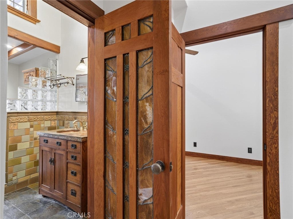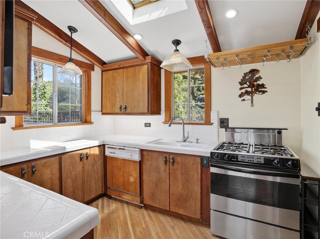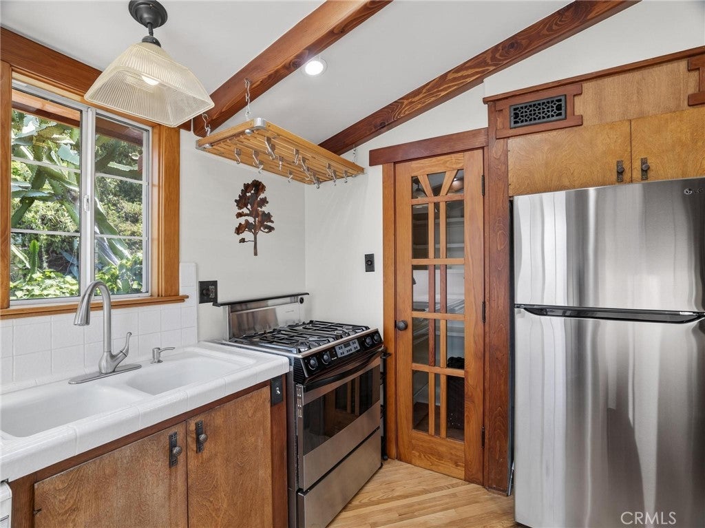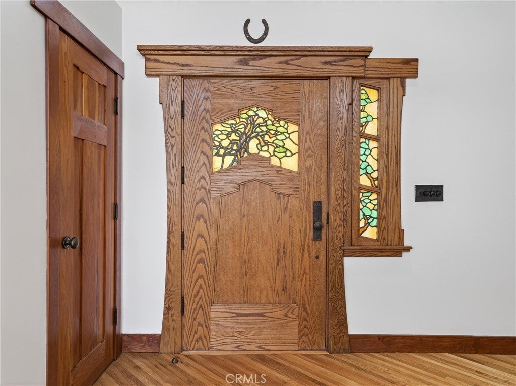 Offered for the first time in almost 50 years, this is an architectural gem located in the coveted Franklin Hills of Los Feliz. A one-of-a-kind true craftsman home, this home was designed by esteemed LA architect Kenneth Lind, inspired by the iconic Gamble House and the historic works of architects Greene and Greene. This home offers privacy, views, unmatched character and impeccable craftsmanship. Upon entering you are surrounded by decades of mature growth and varieties of beautiful succulents and towering cacti. Built with the highest quality of materials in every detail, with solid oak, douglas fir, and redwood throughout. Diagonal oak hardwood floors warm the house, while handmade solid douglas fir doors with hammered bronze knobs, tie the house together. The living room is anchored by a river rock fireplace, while stained glass art fixtures and artistic tile reliefs add rich detail throughout. Natural light floods the house throughout the day. Slate stone floors welcome you into the bathroom comprised of hand-crafted tiles, a clawfoot tub, and a multi-showerhead walk-in with brass fixtures. Some additional features for modern comfort include central heat and AC. Closets lined with pristine cedar planks, storage nooks, and Elfa shelving. A second bedroom offers a large walk-in closet with plumbing for a potential second bathroom. The exterior of this magnificent home displays impressive woodworking craftsmanship, hardy board siding, and copper gutters and downspouts. Up on the chimney sits the vigilant owl, perched to keep watch over this jewel of a home. Enjoy city and sunset views from the wrap-around wooden deck, or soak in the jacuzzi under the trees. A newly constructed retaining wall, with 4-foot diameter pylons drilled 15+ feet deep into bedrock (buyer to verify details), provides structural integrity and peace of mind. The detached two car garage reflects the same level of artisanal detail as the main residence, with custom high length wood beams, both beautiful aesthetically, and structurally sound. Walkability to restaurants, night life, grocery stores and Sunset Junction. Perched high above the street for ultimate privacy, yet minutes from Griffith Observatory, The Greek Theater, Hollywood Bowl, and countless restaurants and cultural hotspots. This is a once in a generation opportunity to own an irreplaceable piece of Los Angeles history, one which could never be replicated today.