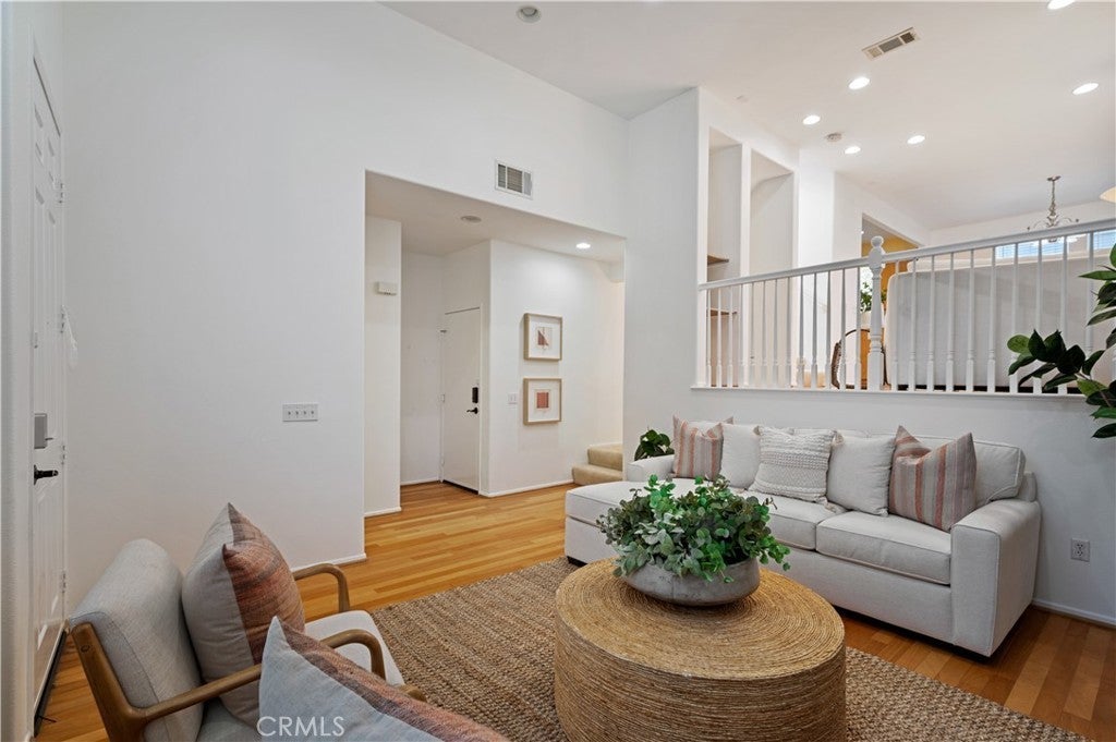 This detached Harbor City townhome is a true standout, with abundant natural light, modern upgrades, and a split-level design that feels both spacious and inviting. The light-filled 3-bedroom, 2.5-bath home offers soaring ceilings and tall windows that flood the living spaces with natural light. Hardwood floors flow through the main living areas, while the open kitchen with a center island and stainless steel appliances, including a built-in microwave, dishwasher, and stove, connects seamlessly to the dining room and a seating area, creating an ideal space for entertaining. Upstairs, all three bedrooms are finished with carpeting. The remodeled primary suite boasts a hotel-like bath with a tiled shower, marble vanity with an LED mirror, and a custom walk-in closet with built-in drawers and shelves. Guest bathrooms include a full bath with a quartz vanity and LED mirror, while a powder room serves the main level. A private patio offers the perfect spot for outdoor dining and BBQs, while a secured front courtyard enhances the sense of privacy. Additional highlights include central AC and heat, a washer and dryer in the garage, and a two-car garage with direct access. Enjoy low HOA and secured access, as well! This home offers all the modern amenities you need with easy access to freeways, Kaiser’s hospital, Palos Verdes, and the beach cities and moment’s from Ken Malloy Park, putting the best of the South Bay right at your doorstep.
