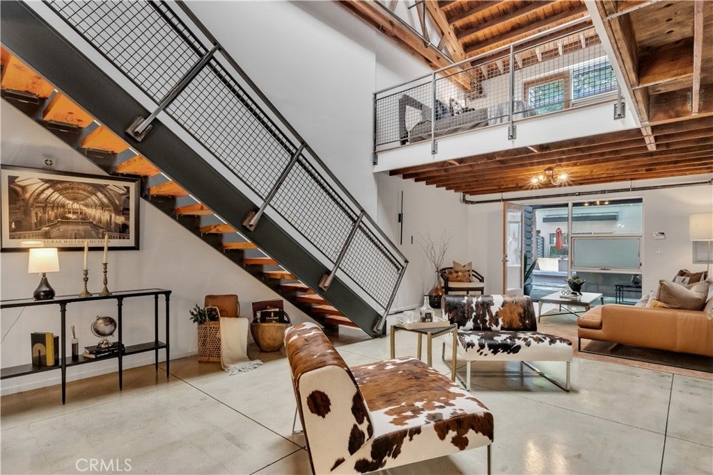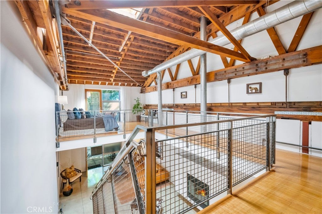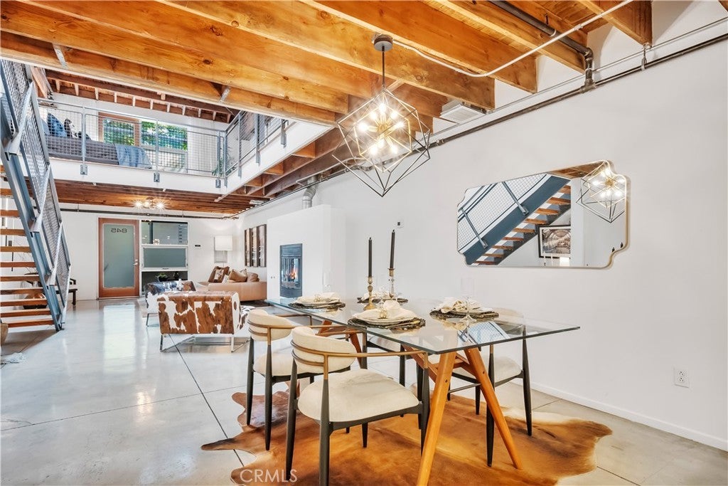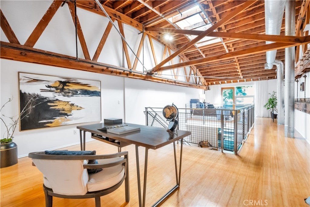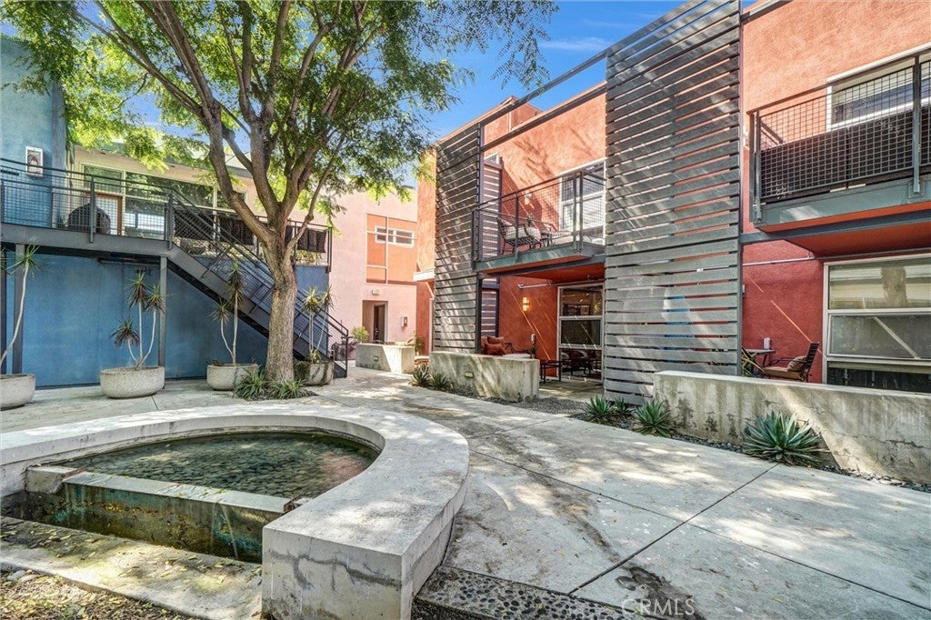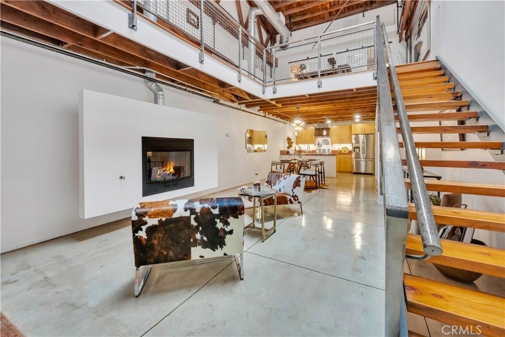 Architectural Loft Living in the Heart of Downtown Long Beach. Welcome to Courtyard Lofts, an award-winning development designed by renowned local architecture firm Studio One Eleven. This boutique community features 16 industrial-style lofts thoughtfully arranged around a tranquil, landscaped courtyard. Recognized with the prestigious 2009 AIA (American Institute of Architects) Housing Award, Courtyard Lofts sets the standard for innovative urban design.Rarely available, this striking two-level residence embodies architectural distinction. Soaring nearly 25-foot open-beam truss ceilings, oversized skylights, and gallery-like proportions fill the space with natural light and dramatic volume. Two private, tree-shaded patios expand the living experience outdoors, while a sleek catwalk and floating fireplace serve as sculptural centerpieces.The open-concept main level seamlessly connects the living, dining, and chef’s kitchen, which is outfitted with premium finishes and fixtures. The well-designed floor plan includes two bathrooms, a generous walk-in closet, and abundant storage throughout—including a spacious two-car garage with additional storage capacity. Upstairs, the airy lofted bedroom suite opens to a private balcony with views—perfect for a peaceful morning or evening retreat. Additional features include polished concrete floors, an in-unit washer and dryer, and central HVAC. Located just steps from Historic Pine Avenue, The Promenade, Shoreline Village, and the beach, this exceptional home offers the very best of sophisticated urban living, wrapped in architectural pedigree and modern comfort.