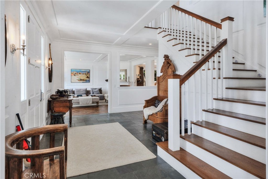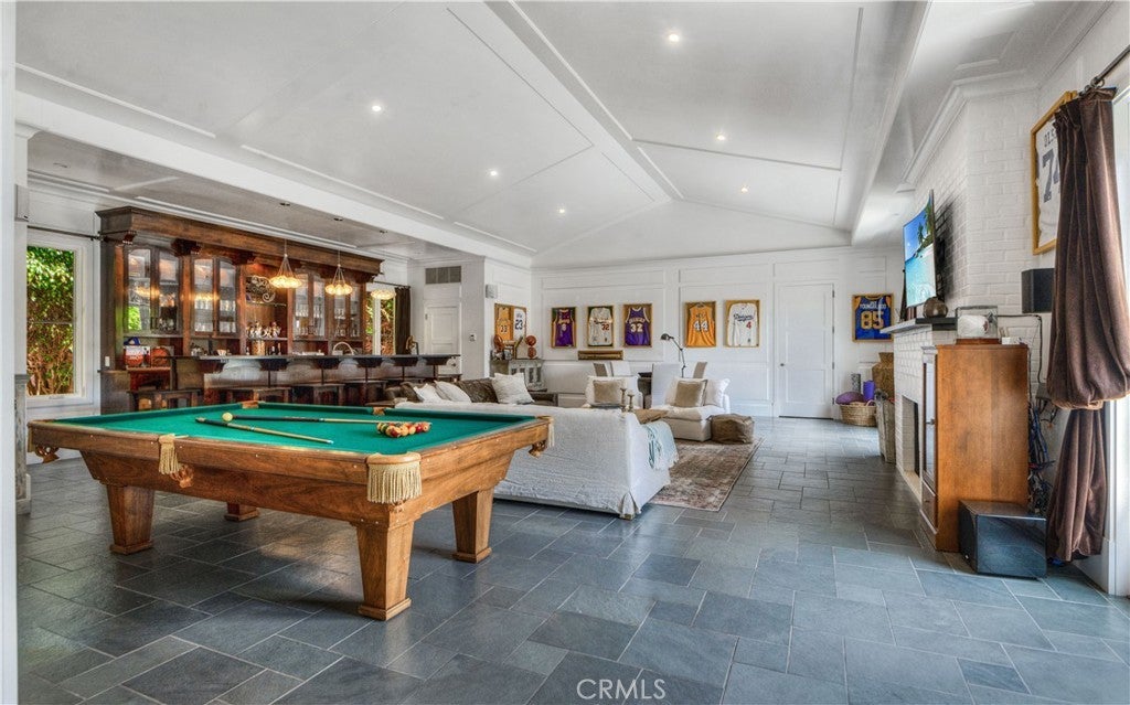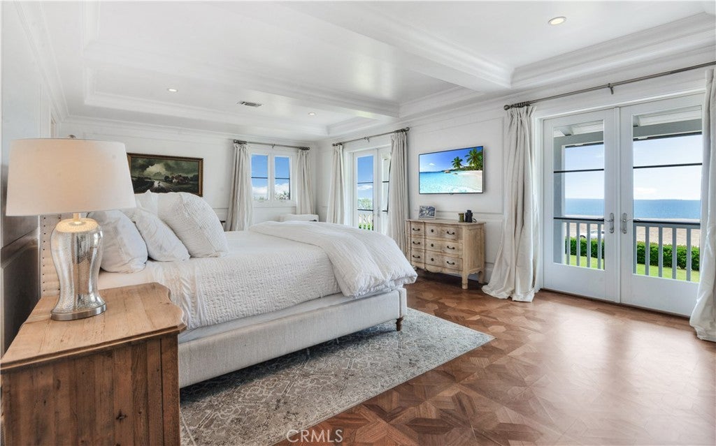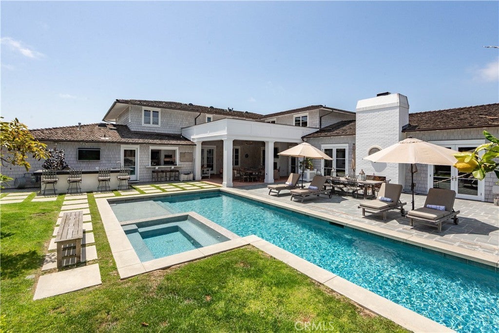 Designed in the spirit of the iconic “Shutters on the Beach” Hotel, this impressive Resort Point residence sits on a sprawling corner lot with unobstructed ocean views. Soaring 9-foot ceilings and oversized rooms create a remarkable sense of volume, while slate and IPE wood floors, paneled walls, and French doors with integrated shutters add timeless charm. A gracious entry opens to the stunning living room with fireplace on one side and the kitchen with adjacent great room on the other. Anchored by a dramatic 10-foot L-shaped island, the kitchen features marble counters, stainless appliances, and sweeping ocean vistas. The entry level also includes an office, a large formal dining room, and a private guest suite with full bath. The massive family room with wet bar, wine closet, fireplace, and soaring ceilings leads to an amazing 12-seat theater making movie nights and sporting events unforgettable. Upstairs, five spacious bedrooms include a tremendous primary suite with breathtaking views. The outdoors is an entertainer’s paradise. The expansive, hedge-lined front lawn features a fire pit that’s perfect for sunset gatherings, while the private backyard is highlighted by a 50-foot lap pool with spa and Baja shelf, a multi-sport court (pickleball, paddle tennis, volleyball, basketball), an outdoor kitchen with Hestan BBQ as well as a TV to keep the grill chef happy! The 600-square-foot loggia has built-in heaters, fireplace, and a big screen TV that ensures year-round enjoyment. Additional amenities include a Lutron lighting system with programmable scenes, security with cameras and recording, air conditioning, two laundry rooms, and a 3-car garage with EV charging.