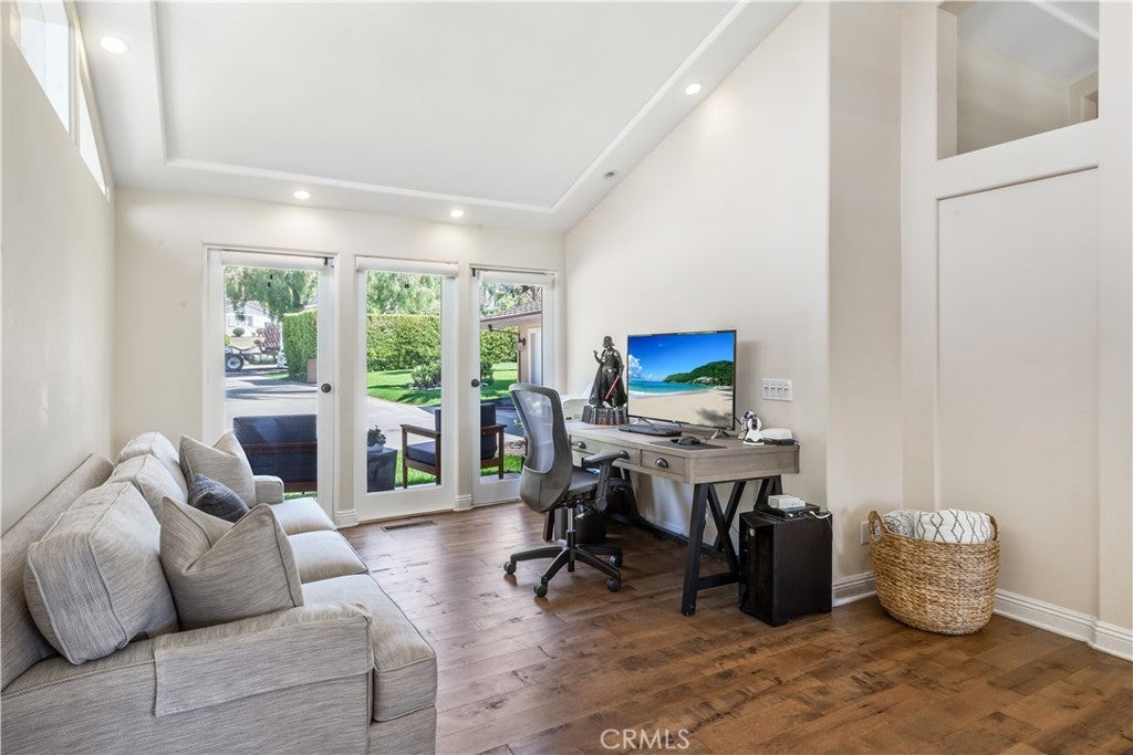 Tall, manicured hedges and a gated entrance create a peaceful sense of privacy as you enter this serene, single-level, lower Lunada Bay home. The spacious front yard welcomes you with a large driveway and a grassy lawn, while inside, an expansive Great Room combines the bright kitchen, dining area, and family room into one seamless space. There’s even a dedicated office for work or study. Large glass doors open to the private backyard, complete with a sparkling pool, generous patio, and a peek-a-boo ocean view; perfect for entertaining or simply relaxing at home. Bedrooms are in their own private wing, offering comfort and tranquility. Set in the heart of Lunada Bay, you’ll enjoy scenic bluff-top trails, inviting neighborhood parks, the vibrant Lunada Bay Plaza, and award-winning K–12 schools just around the corner.