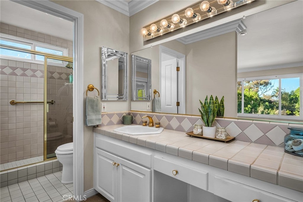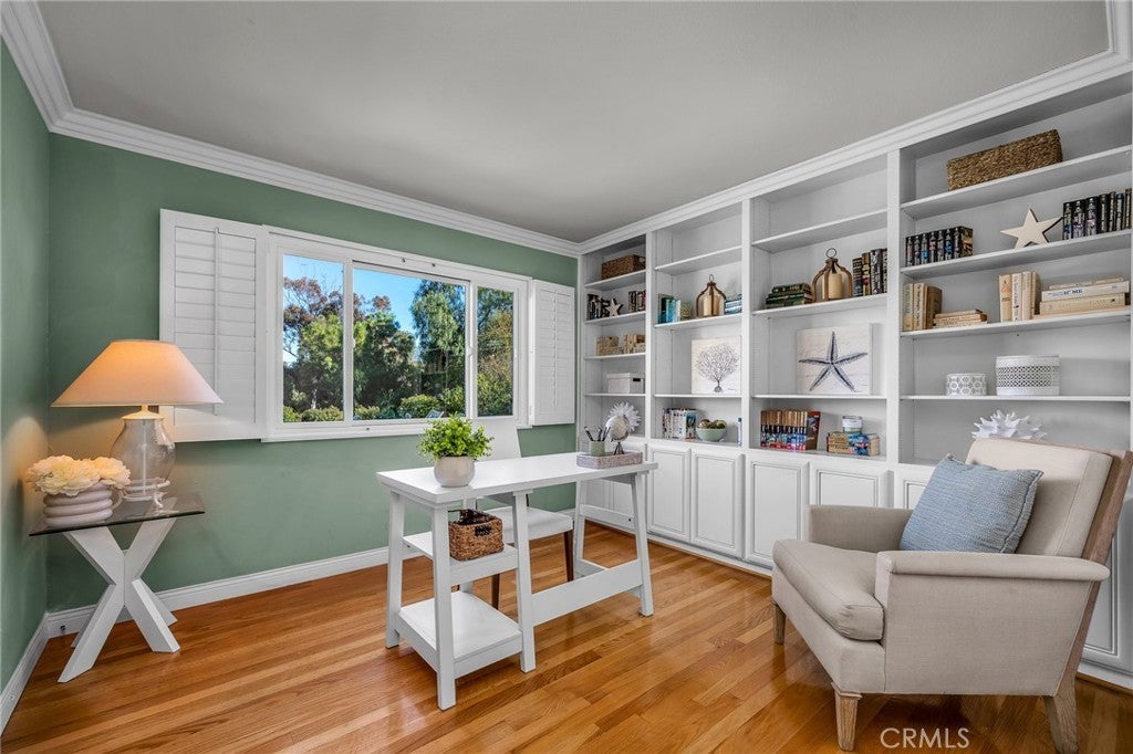 Beamed Ceilings, Breakfast Bar, Built-in Features, Balcony, Crown Molding, Quartz Counters, Recessed Lighting, Storage, Tile Counters, Bedroom on Main Level, Jack and Jill Bath, Phone System, Sunken Living Room
