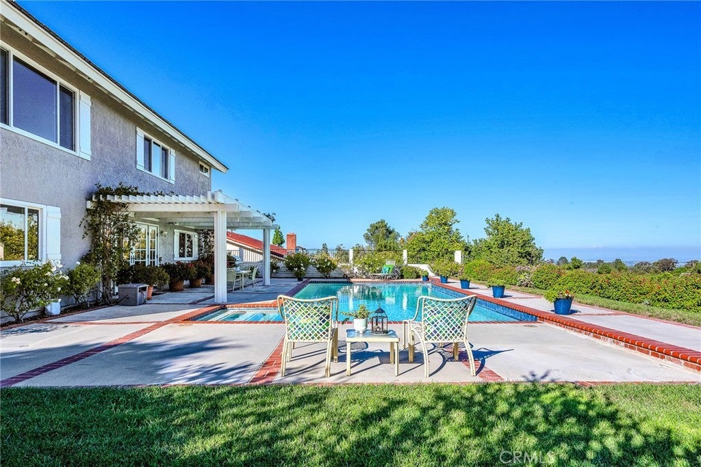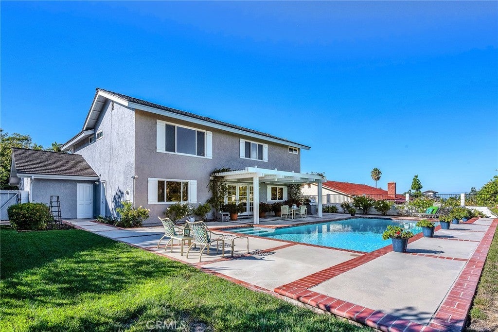 Beautifully maintained home in Prestigious Academy Hill! Original owners have taken immaculate care of this 5 bedroom, 4 bathroom home on a large 20,529 square foot lot. Main floor includes living room with gas fireplace, separate dining area, open kitchen that overlooks the sparkling pool and nicely landscaped back yard, family room off the kitchen and one bedroom which current owners used as an office. There is also a 3/4 bathroom and direct access to a 3 car garage with extra storage. Clever kitchen design includes a slide out table that duals as counter space. Upstairs there are 4 bedrooms. Two bedrooms share a Jack and Jill bathroom. Large 3rd bedroom could easily be used as a second primary with attached bath. The primary bedroom has a view out over the backyard and out to the city lights. Double paned windows insure quiet time. All walls in the home are insulated, so stays warm in the winter (newer heater) and cool in the summer (AC). So many great features: Custom plantation shutters throughout, hardwood floors in entry, hall, family room and kitchen, newer driveway, newer drought resistant front yard landscaping, recently painted outside with inside always maintained... Easy access to 110 Fwy, shopping and dining "on the hill", top rated private school Chadwick Academy plus Award Winning Palos Verdes schools nearby.