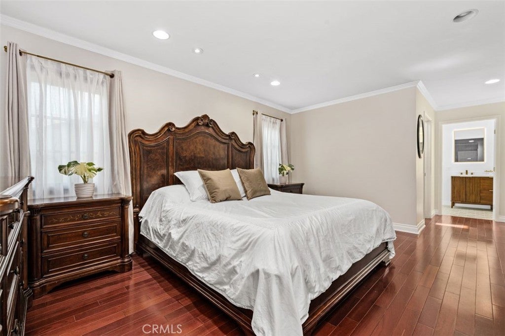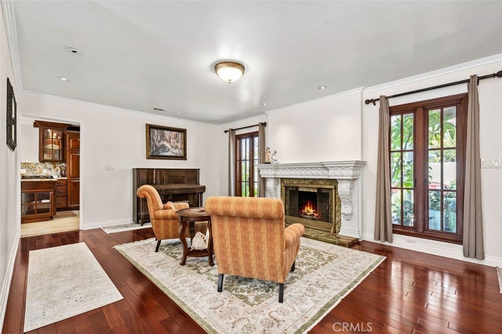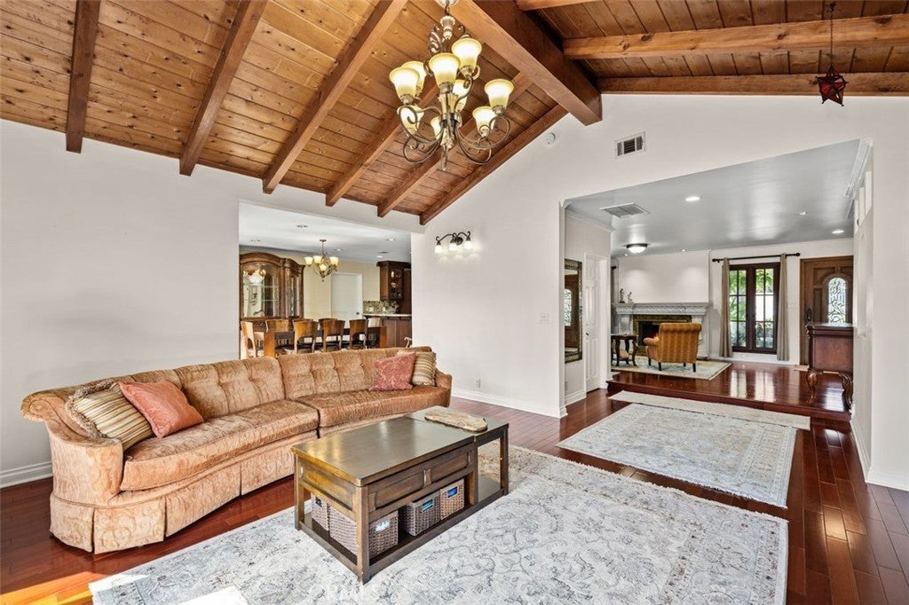 Gorgeous Lease - Offered Furnished or Unfurnished. Beautifully updated home with mahogany wood floors, Kolbe windows/French doors, central heat & A/C, Navien tankless water heater, LED lighting & Eero routers. Gourmet kitchen with maple cabinets, granite counters & Viking appliances (6-burner stove, double oven, stainless sink). Dining room with travertine floors & French doors opening to a spacious garden with fruit trees. Family room features a 12-ft wood cathedral ceiling, 77" LG OLED TV, LG sound system & French doors to the deck. Living room with gas fireplace, green onyx hearth & wood mantle. Updated baths include travertine floors, cast iron tub, integrated shelving & original tile accents. Primary bath offers a spa tub, quartz shower, double vanity, skylight, bidet & LED lighting. Storage/laundry room with HE washer/dryer, custom cabinets & mirrored closets. Outdoor living includes new landscaping, mature fruit trees, a fire pit, a paver deck & outdoor dining set. Gardening service included. Two-car driveway + ample street parking. You have your own section of the garage with storage space, shelving, and a washer/dryer. Garage includes a small portioned-off junior ADU with no common walls or doors to the house. It has a private, separate entrance and separate utilities. The ADU lease states no access to the backyard.