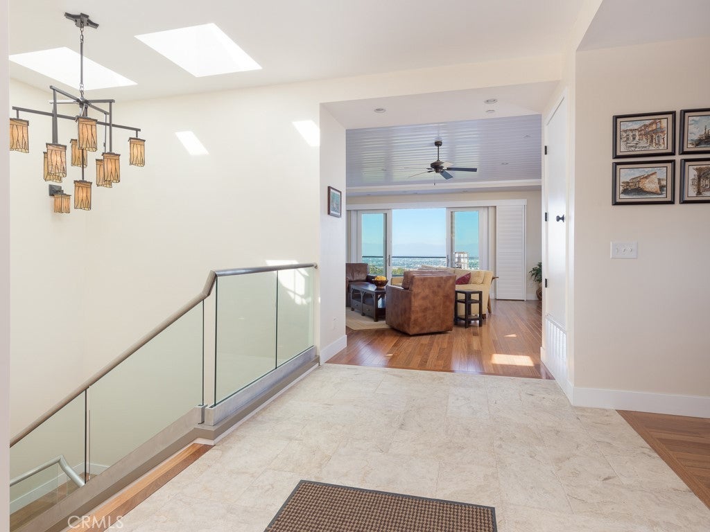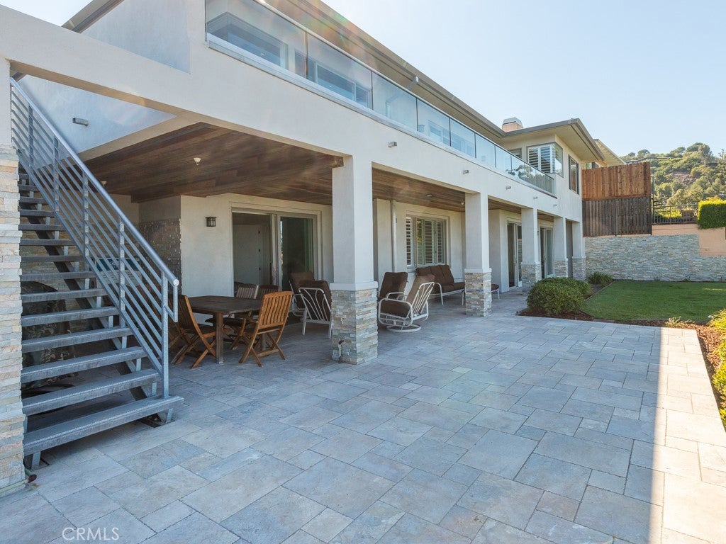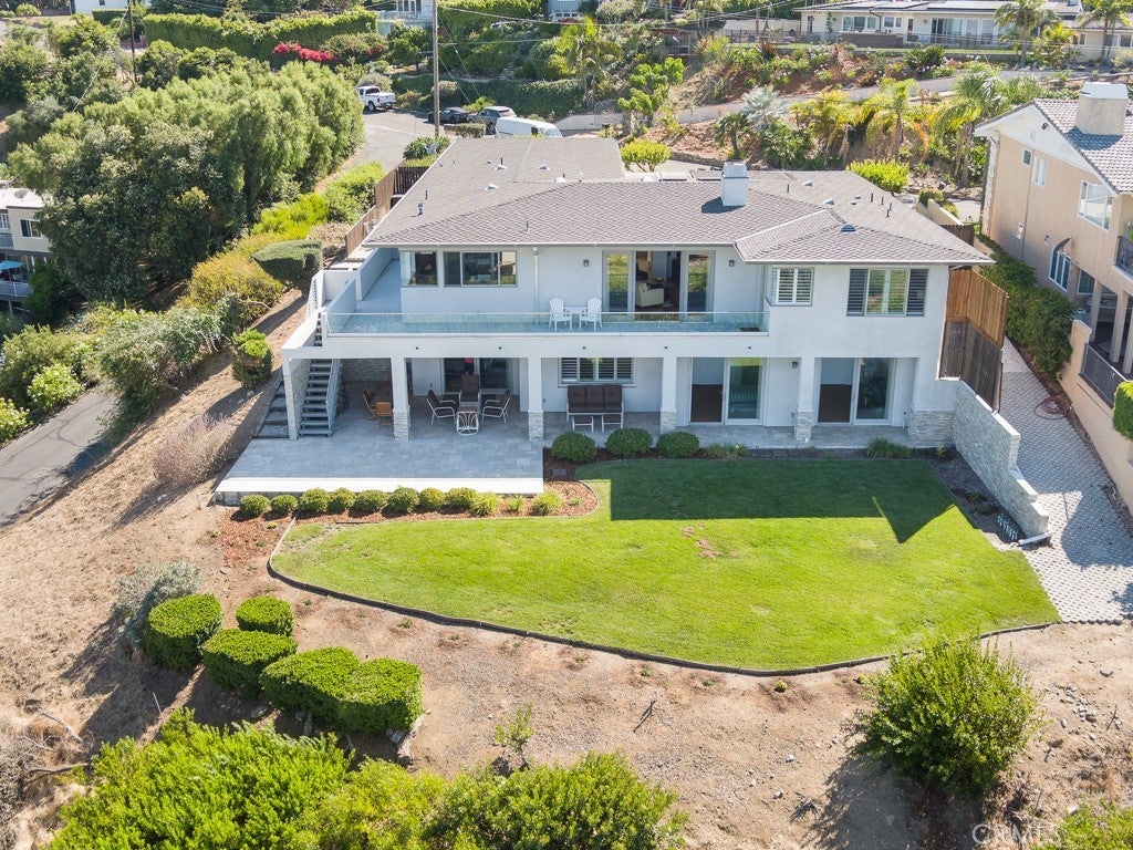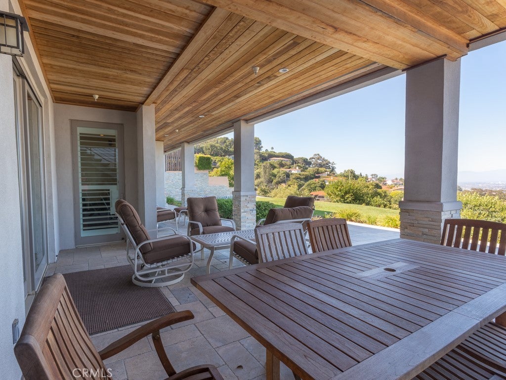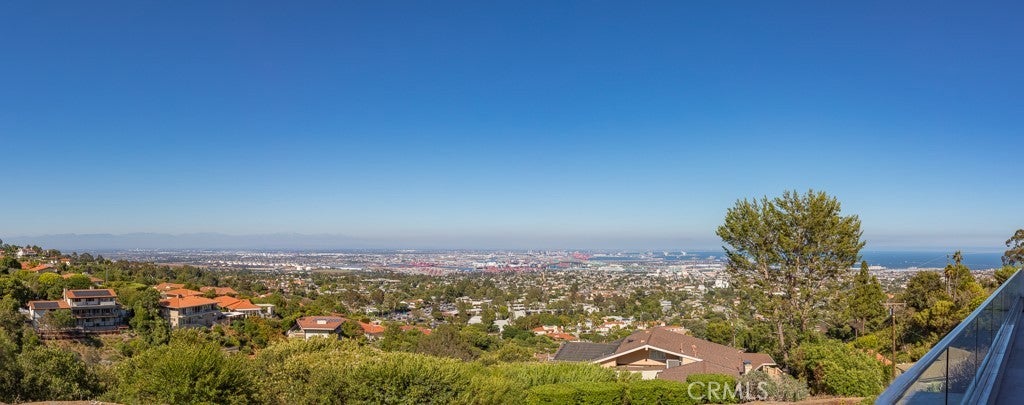 VIEWS, VIEWS, VIEWS! The Frank Lloyd Wright’s architectural style home was completed in 2012, this unique home captures panoramic views of mountains, city lights, harbor, ocean and beyond. While keeping its simplicity, the open living not only enriches the secluded La Vista Verde Estates landscape, but also embraces natural lights with meticulous details. Skylights and plantation shutters showcase the masterpiece. Over 4500 Sq.Ft. living space with 10 foot high ceilings and 8 foot doors. Brazilian teak hardwood adorn the floors the 5 bedrooms and 4 bathrooms offer peaceful and quite resort living. You can entertain guests in both private and open sittings, formal dining room with ocean view and a wet bar. The gourmet kitchen is wrapped with a continuous wall of glass showcasing the incredible blue ocean. The entry level is self contained with garage access to the master suite, additional bedroom/office, kitchen, family room and den and they all opening to a 8 foot deep wrap around balcony creating the ultimate retreat. Exterior camera system as well as Sonos system with indoor and outdoor speakers are found through out the home. Outdoor adventurists will enjoy a pool size rear yard, covered patio with wood inlaid ceilings, oversized 3-car garage, and spacious side yard are ready for your boat and recreation vehicles. Trump National Golf Course and Terranea resort are just minutes away. Residents have access to the top-ranked Palos Verdes Schools such as Mira Catalina Elementary, Miraleste Intermediate, and your choice from two of the top ranked high schools in California. Opportunity does not come too often, come and claim the pride ownership of this luxury property.