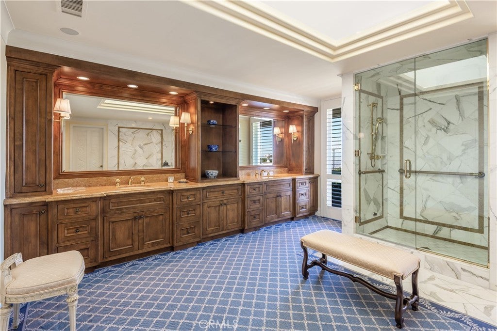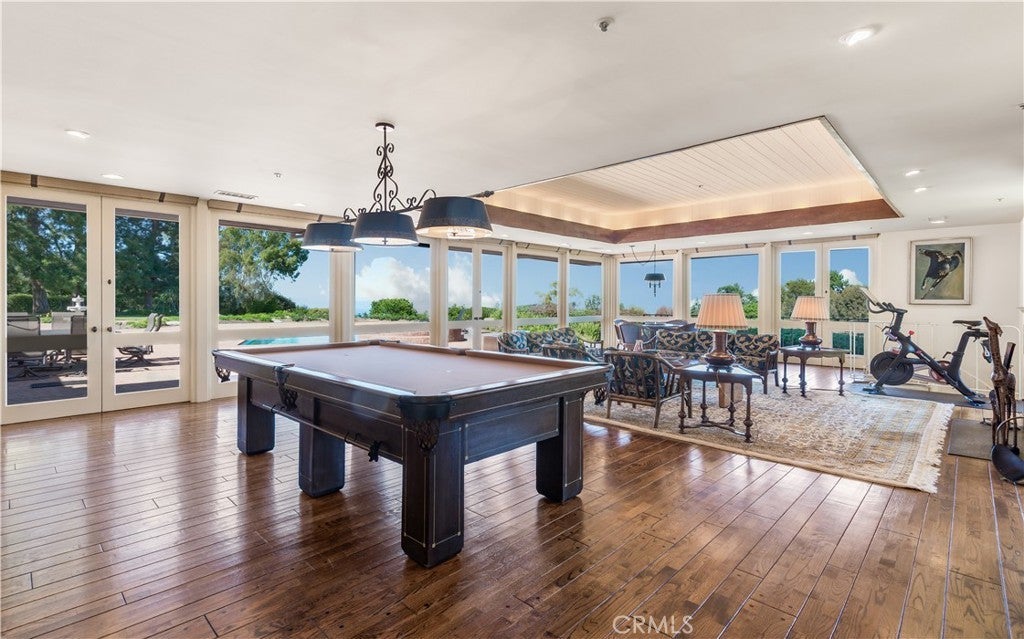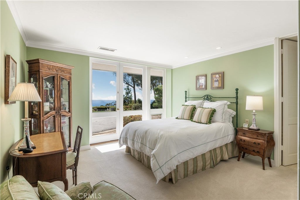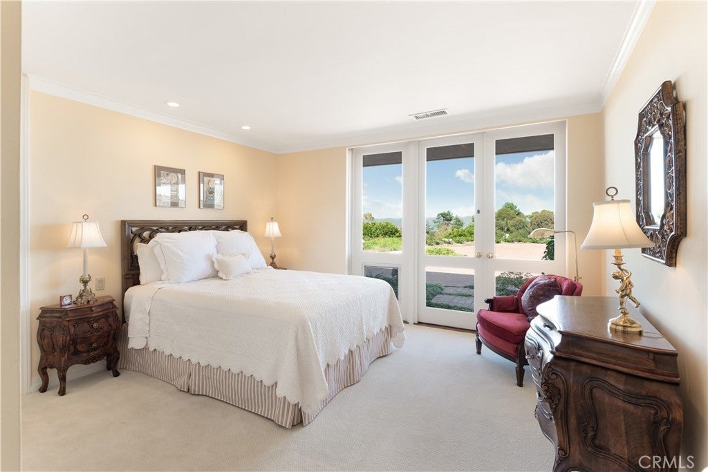 This landmark Crest Road estate is set on approximately 5.5 usable acres, and is one of the very few properties in Rolling Hills offering views in three directions; city lights and coastline to the north, harbor to the east, and ocean and Catalina to the south. Perched above the street with a commanding presence, the home enjoys tremendous curb appeal. A sweeping driveway sets the stage, leading to the elegant porte-cochère, spacious motor court, and a five-car garage. The huge, park-like backyard is truly impressive, showcasing a large pool and spa, expansive lawn, a double bocce ball court, and a barn with riding ring below. Inside, the home exudes a sense of elegance and grandeur, with generous living spaces designed to capture the views. The living room overlooks the rolling front lawn with sweeping vistas of the ocean and Catalina, while the spacious family room opens to the backyard with its dazzling city lights and coastline views beyond. The bedroom wing includes five bedrooms, each with its own full bathroom, providing comfort and privacy for family and guests alike. The oversized primary suite serves as a private retreat, offering a luxurious sense of space and privacy. The separate guest casita enjoys a bedroom, kitchenette and cozy living space. Additional highlights include a screening room, a gym, sauna and a temperature-controlled wine cellar. With its exceptional setting, rare multi-view orientation, and expansive grounds, this property presents a remarkable opportunity to own one of Rolling Hills’ signature estates, ready to enjoy as is or to tailor to your vision. This is the one you’ve been waiting for…
