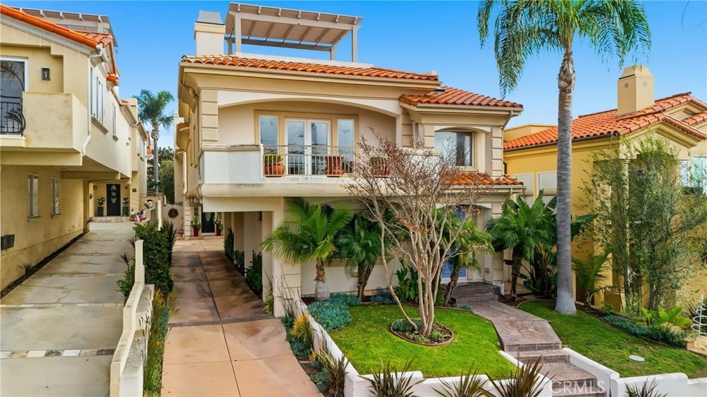 Experience coastal living in this beautiful, Mediterranean-style townhome, built by La Charite Homes. This west-facing front unit is nestled elegantly on one of the most sought-after streets in prime South Redondo. The home features a sweeping staircase in the foyer. This home features three bedrooms, two of which are located on the first floor. The expansive primary suite has vaulted ceilings, a fireplace, and a walk-in closet. The home has 2.5 baths, with the primary bath showcasing a Jacuzzi tub and a standalone shower. The chef’s kitchen is complete with stainless steel appliances, pantry, and ample cabinet storage. The kitchen and living room are adjacent and open to a second-level terrace, perfect for an outdoor dining experience. Both the living room and primary bath feature fireplaces. Bright and airy, this home is filled with natural light and coastal charm. Enjoy close proximity to the Redondo Beach Pier, King Harbor, and The Strand bike path. Riviera Village, with many casual and fine dining options is nearby. This home offers ocean, mountain, and coastal views. The rooftop deck has a BBQ grill and a pergola over the deck area with panoramic views and refreshing ocean breezes. The front garden features mature landscaping and the large two-car garage features ample space and convenience. This home is a must see!