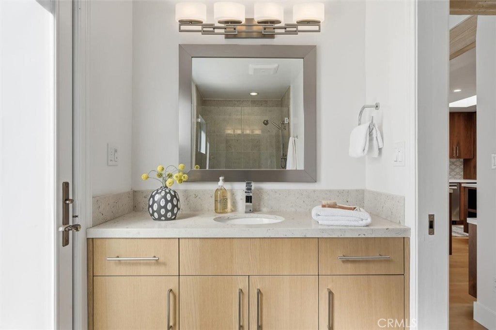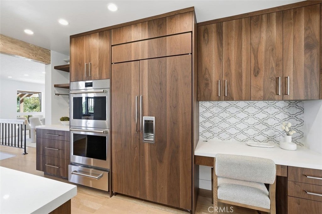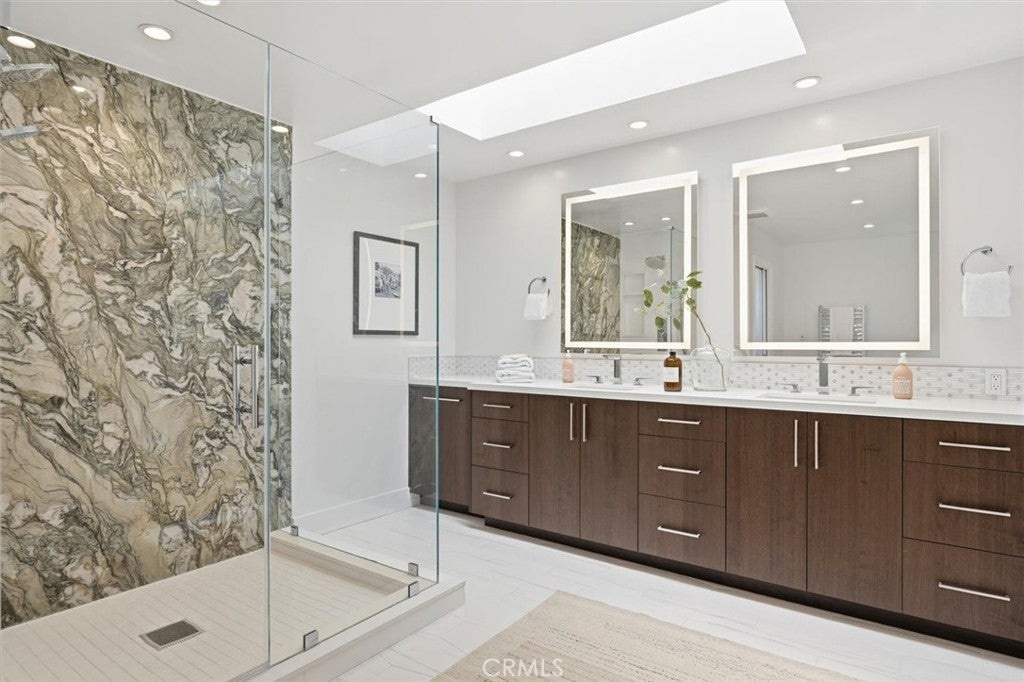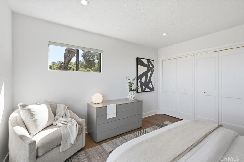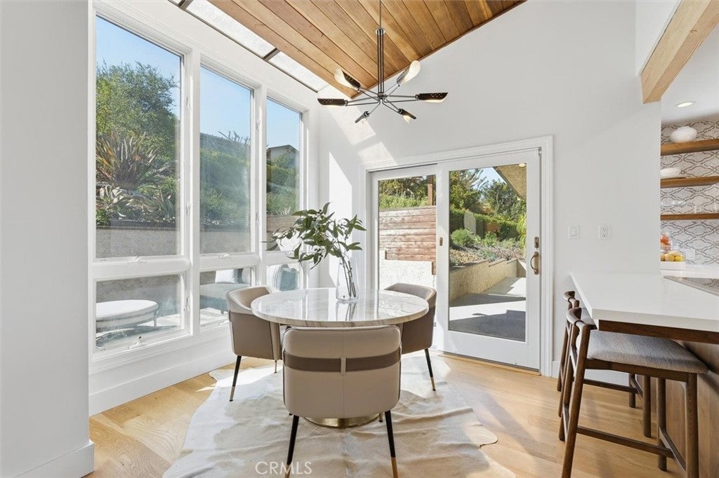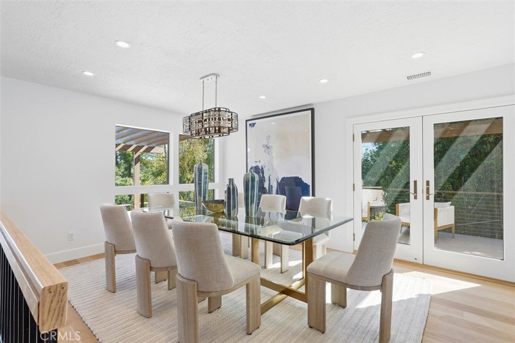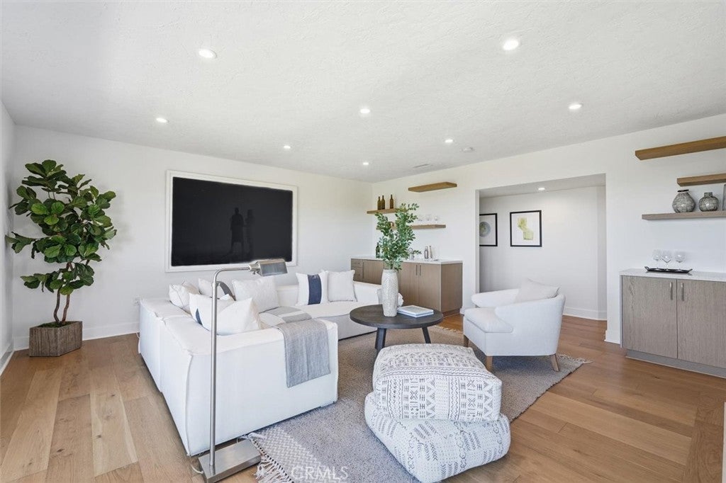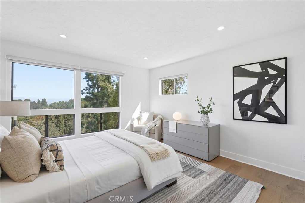 Nestled in the quiet hills of Rancho Palos Verdes, this is the private luxury home you have been waiting for. Boasting stunning views and elegant finishes throughout, this home is a true retreat. Set at the end of a tree-lined cul-de-sac and private driveway, this extensively remodeled modern residence blends timeless design with thoughtful craftsmanship. Resting on over half an acre, this home's flexible floor plan includes four bedrooms, formal living and dining rooms, and a versatile flex space ideal for an office, media room, or home gym. The gourmet kitchen is a showpiece with Subzero refrigerator, Wolf induction cooktop, Wolf oven, Wolf warming drawer, microwave drawer, Bosch dishwasher, and large island perfect for entertaining. The spacious primary suite offers vaulted ceilings, sweeping city views. The spa-like primary bath features a freestanding soaking tub and an expansive glass-enclosed shower. Each bathroom features modern finishes and attention to detail, such as LED-lit mirrors. The generously-sized downstairs family room boasts serene views and features a built-in bar area with mini fridge and convenient bar sink. Additional highlights include engineered hardwood flooring, thoughtfully placed lighting, and custom built-ins throughout. Outside, multiple patios and deck provide calm spaces for dining and entertaining, complemented by a hot tub and lush landscaping. The three-car garage features a work bench with built-in cabinets, an additional storage room with large utility sink, and the large driveway provides ample parking for guests. Surrounded by nature and framed by panoramic downtown and city-light views, this property offers a sense of calm and seclusion that is rare to find. Conveniently located near Peninsula Center’s shops and restaurants and within the award-winning Palos Verdes Peninsula school district, this home offers a perfect blend of quiet luxury, privacy, and sophistication. A rare opportunity to experience refined living.