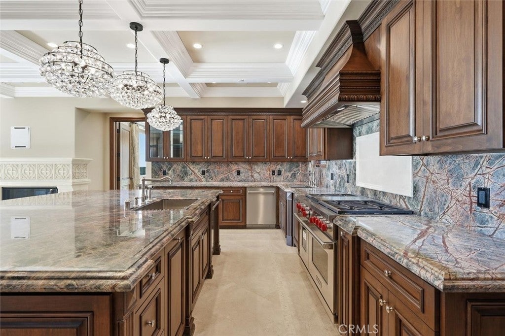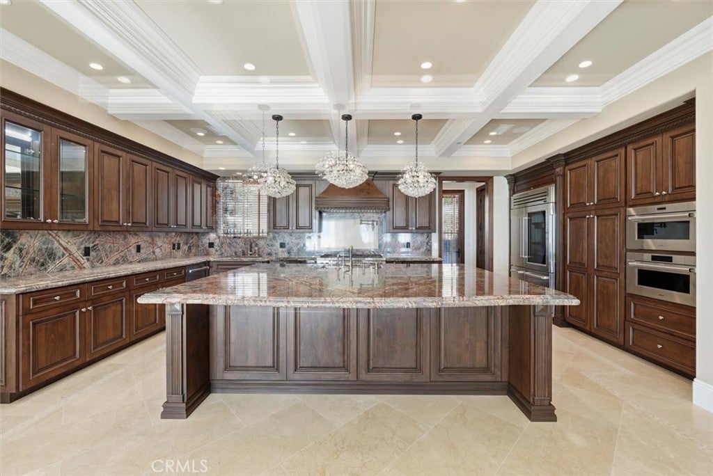 Introducing a new era of coastal sophistication in this brand new 5 bedroom with 5 ensuite bathroom estate, perfectly positioned within the prestigious Estates at Trump National Golf Course in Rancho Palos Verdes. Spanning nearly 5,000 sq. ft. of meticulously curated living space, this architectural masterpiece situated on a dream lot captures sweeping panoramic views of Trump Golf Course, the Pacific Ocean and beautiful Catalina Island from nearly every vantage point. Step through grand mahogany doors into a world defined by craftsmanship and comfort. Crema Marfil stone floors, alder cabinetry, and oak wood accents complement three elegant gas fireplaces in the living room, den, and primary suite which leads to a large primary bath with jacuzzi tub and walk in steam shower. The designer kitchen is a chef’s dream, featuring granite slab countertops, a Wolf 6-burner range with griddle, Sub-Zero refrigerator, large wine fridge, dual sinks, two dishwashers, and a custom walk-in pantry with pull-out drawers. Designed for seamless indoor-outdoor living, the residence transforms to an entertainer’s paradise, complete with a lap pool, jacuzzi, outdoor fireplace, and fire pit set against the backdrop of glowing Pacific sunsets and 6+ Trump Golf Course tees enjoyed from the yard and multiple balconies. Every modern amenity is at your fingertips, including a main floor guest half bathroom for convenience, a private elevator ensuring effortless access between the two levels, built-in speakers and lighting control, solar energy, dual-zone AC, and an expansive 1,006 sq. ft. 4-car garage. Located in a 24-hour guard-patrolled community, this new construction residence offers the ultimate blend of privacy, security, and timeless elegance. There is luxury and then there is beyond luxury. Schedule your private tour today and experience the unparalleled luxury of life at Trump Estates.