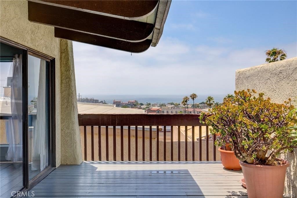 Bright and open with ocean views throughout, this 2-bedroom + bonus room, 2-bath home offers 1,520 sq. ft. of comfortable coastal living in Hermosa Beach. Abundant natural light fills the great-room style layout, where high vaulted beamed ceilings, slate flooring, a slate-tiled fireplace, and a seamless flow to the expansive ocean-view deck create an inviting space for everyday living and entertaining. The deck serves as an extension of the living room — ideal for indoor-outdoor dining, relaxing in the ocean air, or working from home against a South Bay backdrop. The kitchen features travertine countertops, white cabinetry, oven/broiler combo, dishwasher, and a peninsula with seating. The primary suite includes wood-style floors, marble bathroom flooring, a wide vanity, and generous closet space. The second bedroom, also with wood-style floors and a large closet, connects to the primary bath while maintaining its own private vanity area. A bonus room on the garage level offers flexibility for a home office, guest room, gym, or additional storage. Additional highlights include a 2-car garage with storage and laundry. The home sits in a prime Hermosa Beach location close to the sand, King Harbor, Hermosa Pier, shopping, dining, entertainment, and excellent schools. A well-designed residence that brings together space, function, and coastal comfort.