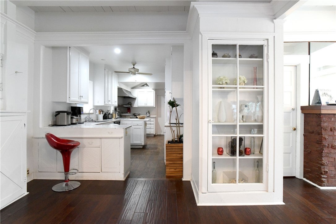 Beamed Ceilings, Built-in Features, Balcony, Ceiling Fan(s), Separate/Formal Dining Room, Open Floorplan, Recessed Lighting, Storage, Bedroom on Main Level, Galley Kitchen, Multiple Staircases, Paneling/Wainscoting, Track Lighting
