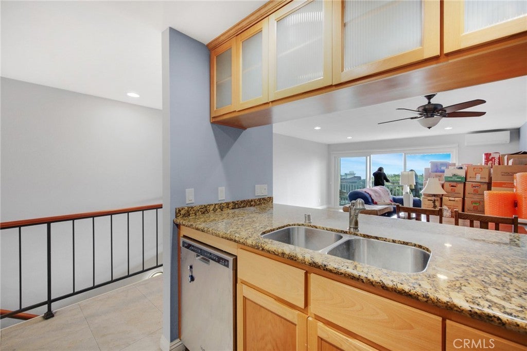 Experience coastal living at its finest in this stunning home where sweeping Pacific Ocean views greet you the moment you walk in. The sun-filled open floor plan seamlessly connects the living and dining areas to a private balcony, creating the perfect setting for morning coffee, ocean breezes, and unforgettable sunsets. The kitchen is thoughtfully designed with granite countertops, stainless steel appliances, and custom solid wood cabinetry, combining style, functionality, and abundant storage. A conveniently located bathroom on the main level adds ease for guests and everyday living. Downstairs, both bedrooms offer complete privacy, each with its own attached bathroom. The primary suite features generous closet space, while the second bedroom includes a walk-in closet and flexible use as a guest room, home office, or creative retreat. Additional highlights include efficient split-system heating and cooling, an in-unit stackable washer and dryer, and move-in-ready condition. Residents enjoy resort-style amenities, including a swimming pool, picnic area, and beautifully maintained grounds within a secure gated community. With scenic parks, coastal trails, beaches, and local dining nearby, this home offers a relaxed coastal lifestyle with breathtaking ocean views.