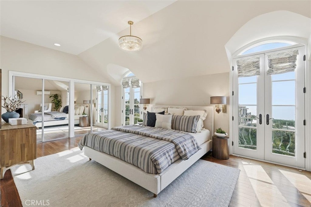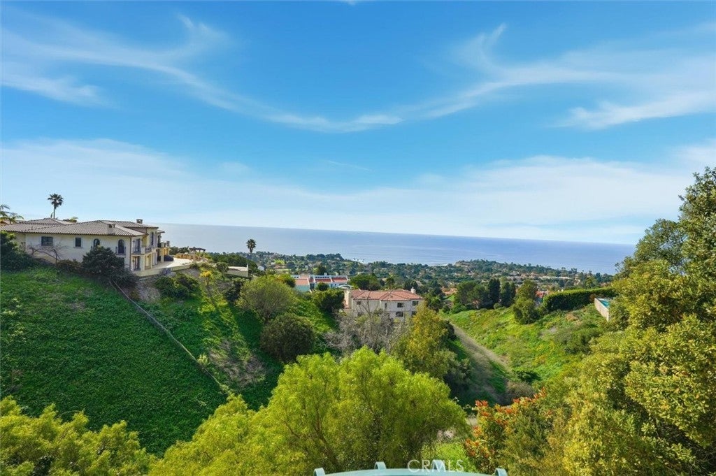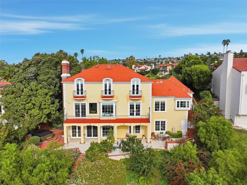 Peeking above lush landscaping and custom wrought-iron gates, this one-of-a-kind Elegant French Château captures breathtaking ocean and sunset views from all levels and nearly every room, creating a constant connection to the Pacific. As the automatic gate opens, you arrive through manicured hedges and colorful stonework to a residence that immediately impresses with its timeless French architecture, beautifully curated grounds, and three-car garage. Gray brick pavers lead to a dramatic double-door entry where soaring ceilings and a striking spiral staircase set the tone for the home’s grand scale and light-filled interiors. Just off the entry is a formal study with its own private entrance. Beyond, the living room opens to a full-width balcony framing expansive ocean and sunset views—an unforgettable focal point and a backdrop enjoyed throughout the day. The main level also features a formal dining room, a chef’s kitchen with high-end appliances, walk-in pantry, and eat in kitchen, a spacious laundry room with extensive storage, direct access to the three-car garage, and a guest bedroom adjacent to a newly updated bathroom—all enhanced by elevated ceiling heights and sweeping coastal vistas. Upstairs, the primary suite is a serene retreat with French doors and two Juliet balconies showcasing spectacular ocean and sunset views. The luxurious en-suite bath includes dual sinks, a large walk-in shower, soaking tub, water closet, and separate his-and-hers closets. Two additional bedrooms and a full bathroom complete this level, each enjoying the home’s signature light, volume, and views. Designed to comfortably accommodate multi-generational living, the lower level functions as a private living space of its own. This level includes a generous family room with 12' beamed ceilings, wood-burning fireplace, wet bar, hobby or workout room, and French doors opening directly to the brick backyard. Outdoors, enjoy an above-ground spa and built-in BBQ—perfect for relaxed coastal entertaining. Two bedrooms and two bathrooms complete this level, offering flexibility for extended family, guests, or long-term living arrangements. A rare opportunity to experience true joie de vivre in an exceptional ocean- and sunset-view residence where space, views, and architectural elegance converge.