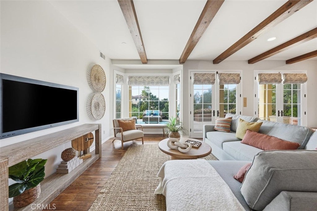 Beamed Ceilings, Built-in Features, Balcony, Separate/Formal Dining Room, Granite Counters, High Ceilings, Recessed Lighting, Bar, Primary Suite, Multiple Staircases