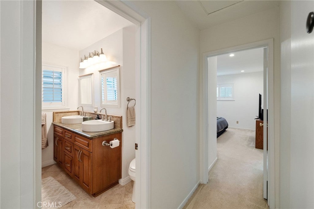 Love at first sight. You will be totally impressed with this beautifully upgraded , unique two story 5 bedrooms (can be 6), 3 bathrooms home with great curb appeal in the highly desirable Hickory Park neighborhood of Torrance. The front door welcomes you into a formal entry leading to a step-down living room with a large window and a heartwarming fireplace. The main level greets you to an open, bright and inviting floorpan with living, formal dining room/family room and a spacious open kitchen with breakfast nook and sliding glass doors leading to an inviting patio and backyard, perfect for entertaining family and friends or simply sipping your morning coffee. The hallway leads you to a master bedroom with a conveniently located connecting room and its own remodeled bathroom. Two more bedrooms and a beautifully remodeled full bathroom with double sinks, tub and shower complete this level. Stairs lead up the second floor featuring an impressive, very large and bright second master suite with windows, and views. A tastefully remodeled bathroom with double sink and shower and another large bedroom completes this level. Other outstanding features include upgraded double-pane windows and shutters, newer heat pump with combo air conditioning and heat, newer water heater, upgraded 220 amp electrical, recessed lights, smooth ceiling, ceiling fans, newer dishwasher and a newer oven with convection and air fryer. An inside laundry area. 2 car attached garage. An extraordinary residence surrounded by the loveliest community, parks and schools. This is a home to create memories for years to come. Destined to win your heart.