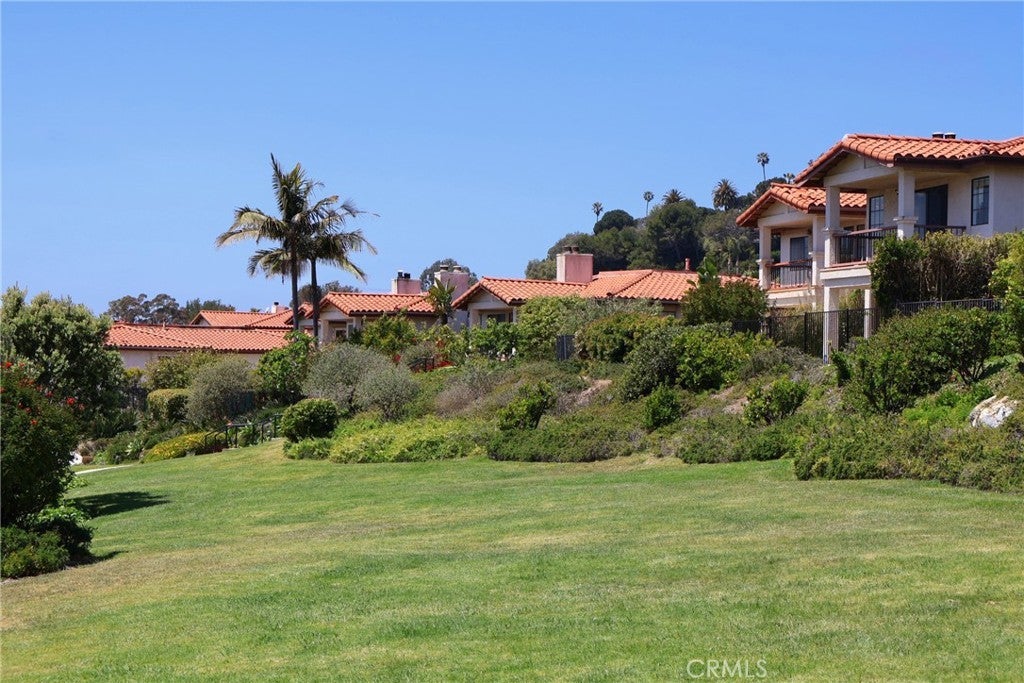Enjoy joyful life, not just to eat and sleep, in this resort like 3-bedroom+large bonus room home. One of a kind 180 degree view (click 360 icon to see video): a wonderful combination of panoramic ocean view with Catalina Island, red tile roofs and green belt, is “picture perfect.” You are invited to sit on the balcony chair for a while to appreciate the great feeling of relaxation. Yes, your real life and resort life can co-exist here. Enjoy strolling on a long greenbelt path to the beautiful club house. The street level offers an open floor plan with remodeled kitchen, breakfast area, dining ell, a full bathroom and bright spacious living room. In addition, the bedroom-size bonus room (173sf) adjacent to the garage can be used for a study, office or guest room. All three spacious bedrooms are downstairs where laundry closet and utility room are also located. The primary bedroom features a surprisingly pleasant view, remodeled bathroom with separate shower/large bathtub and walk-in closet. Afar from busy city noises, it is located next to Terranea Resort, and a short drive to Golden Cove shopping center where Trader Joe’s, specialty shops, restaurants, Chase bank and Seven-Eleven gas station are awaiting you.