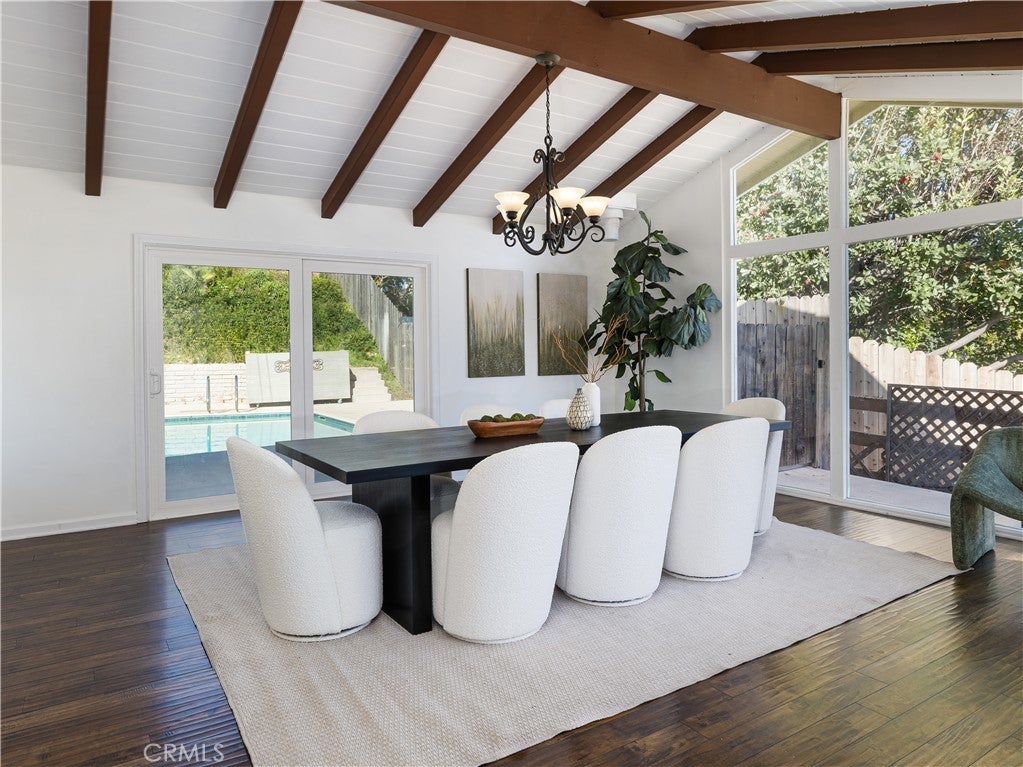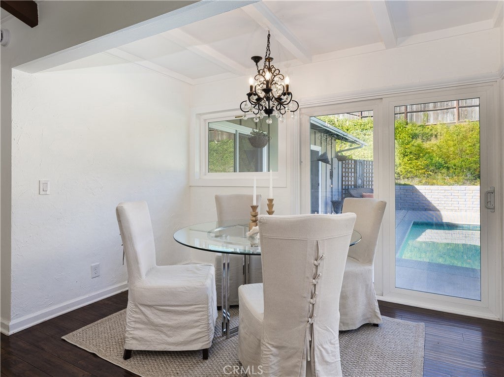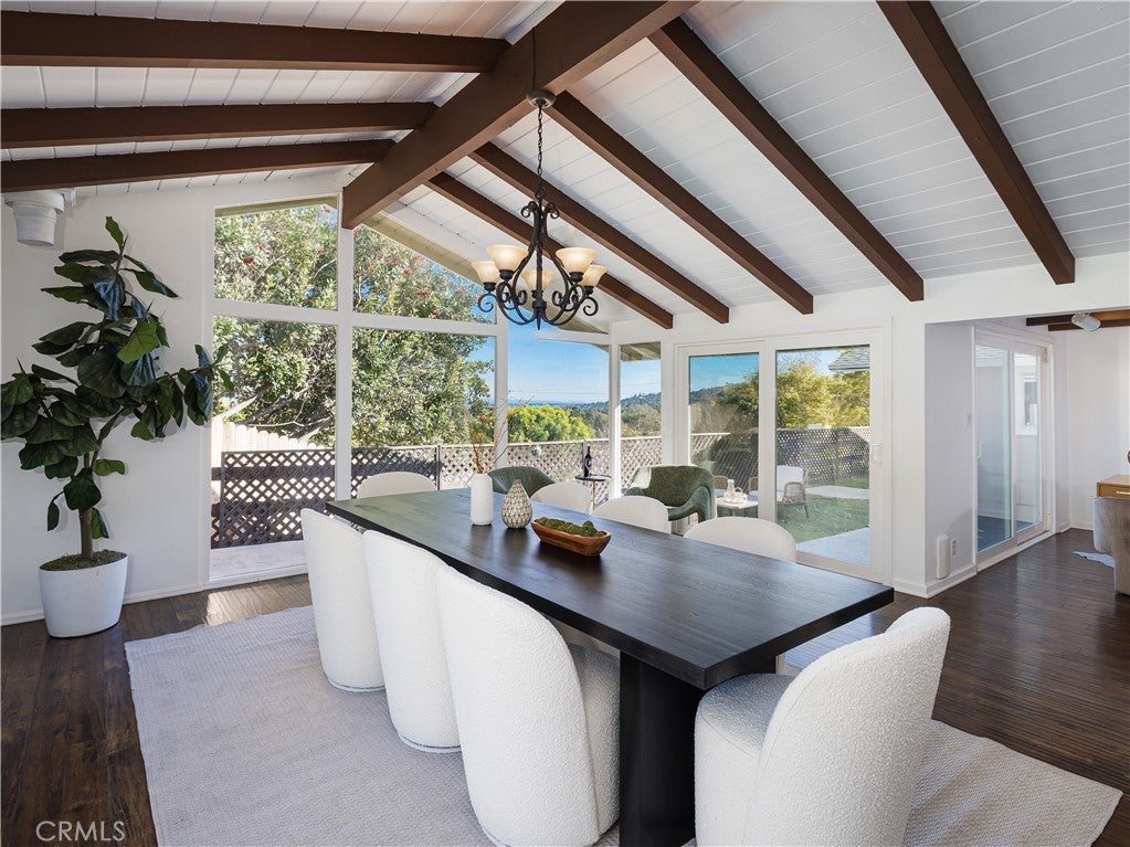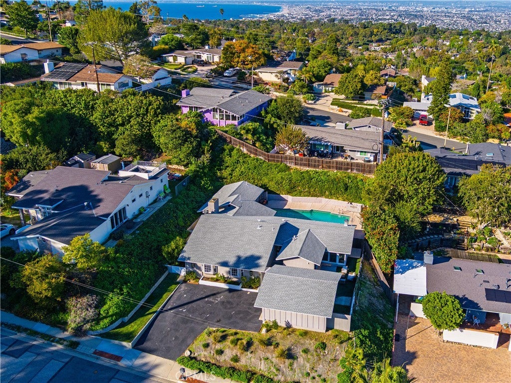 Great value for beautiful Rollingwood neighborhood one-level home with abundant ambient light and versatile open floor plan with 4 bedrooms, 3 baths and 2,432 square feet. Large Living Room and Dining Room (or could be Family Room) with sliding doors to the pool area. Galley style kitchen with pass through to Dining and Living Rooms. Living Room has fireplace and adjoining breakfast area. Huge Dining Room with floor to ceiling glass has harbor and some ocean view. Office/Den off the Dining Room. Private Primary suite with 2 closets. Another bedroom is en suite with its own bathroom. Cathedral/vaulted ceilings. Wood floors throughout. Newer windows and roof. Large Swimming Pool. Detached 2-car garage. Separate laundry room with folding space and cabinetry. Property is being sold "as is." Centrally located close to schools, park, Peninsula Shopping Center, restaurants, Theater, and Library. Award winning Palos Verdes schools.