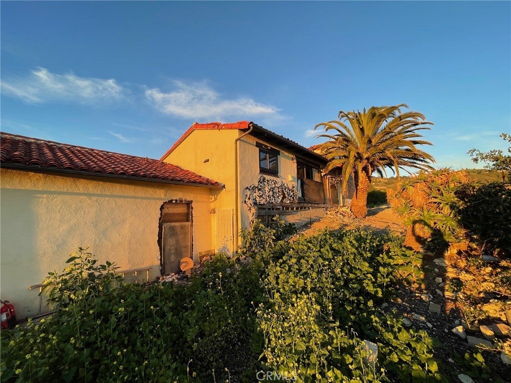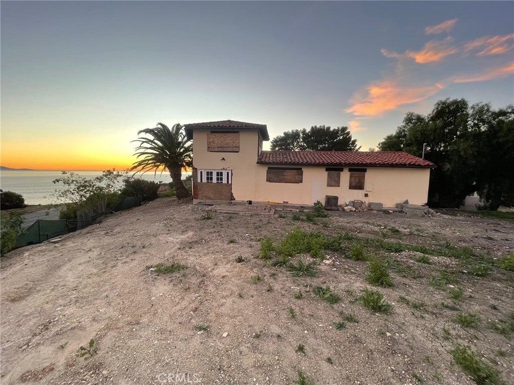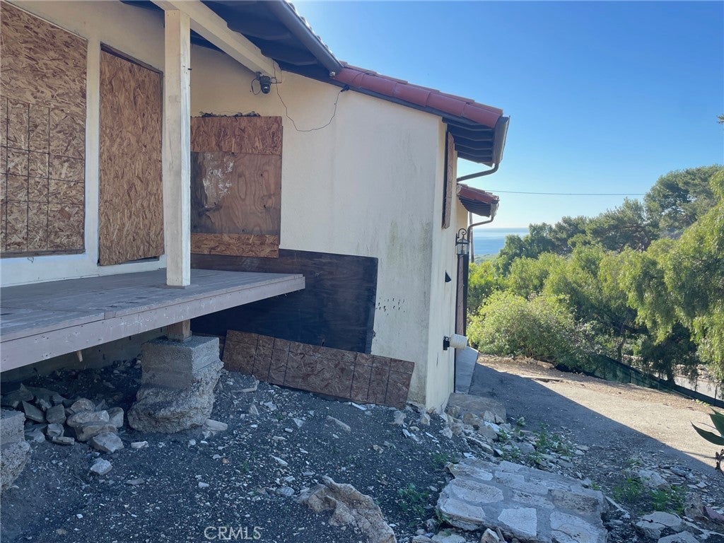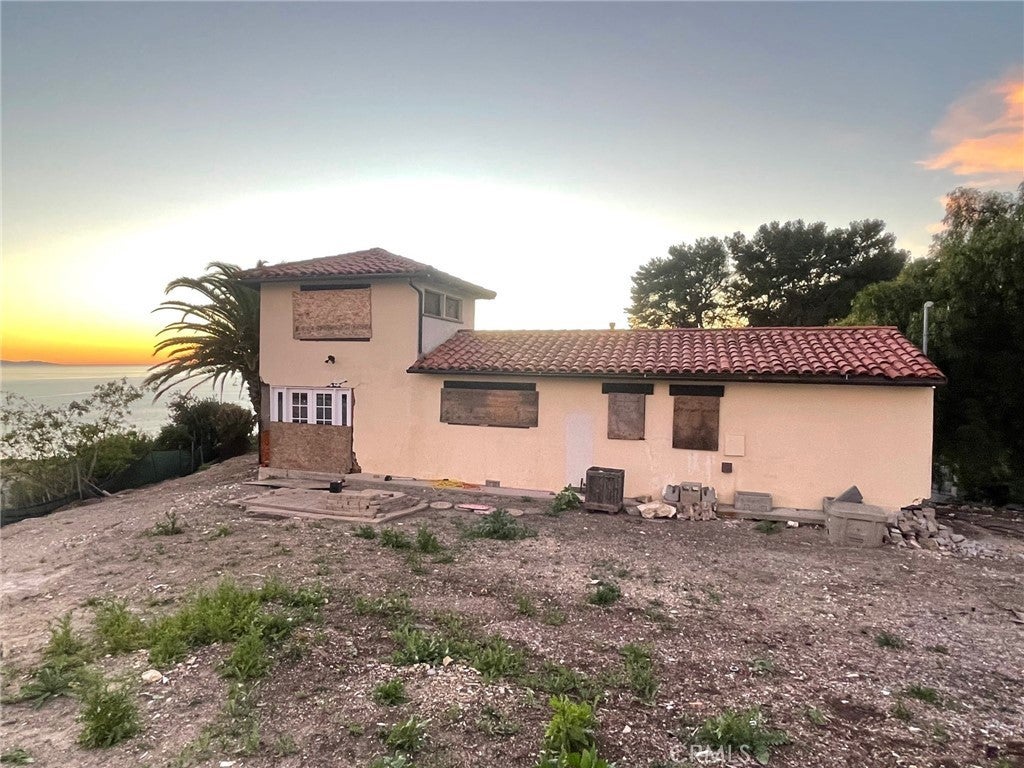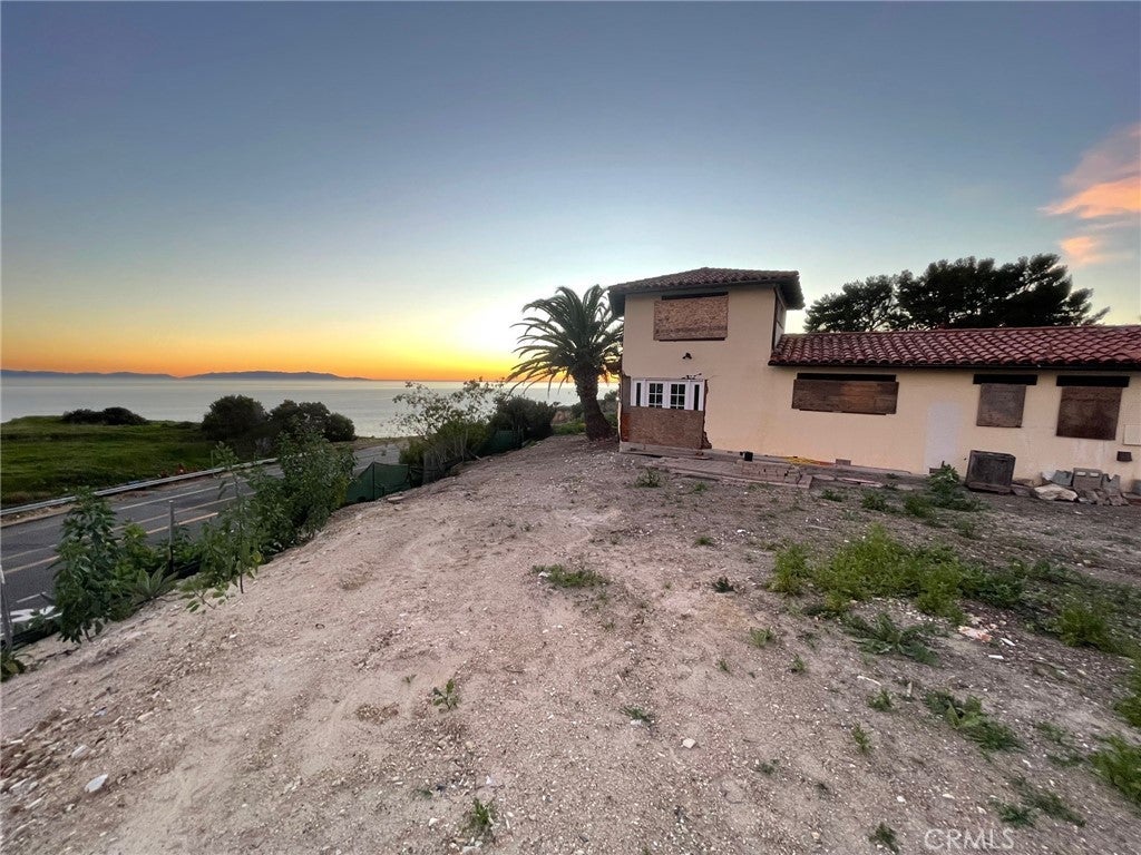 Absolutely panoramic views from this land movement compromised home. The list price is not a typo..and the view photos are not photoshopped. In many ways it is a spectacular location, no better views or weather is available in Palos Verdes BUT the home is quite affected by land movement. Please pay particular attention to the aerial overlay as it pertains to lot lines as well as the photos of the home itself. For any buyer, there will be much to do to enable occupancy and bring it back to its former condition. Sale will only be As-Is with no financing contingencies.