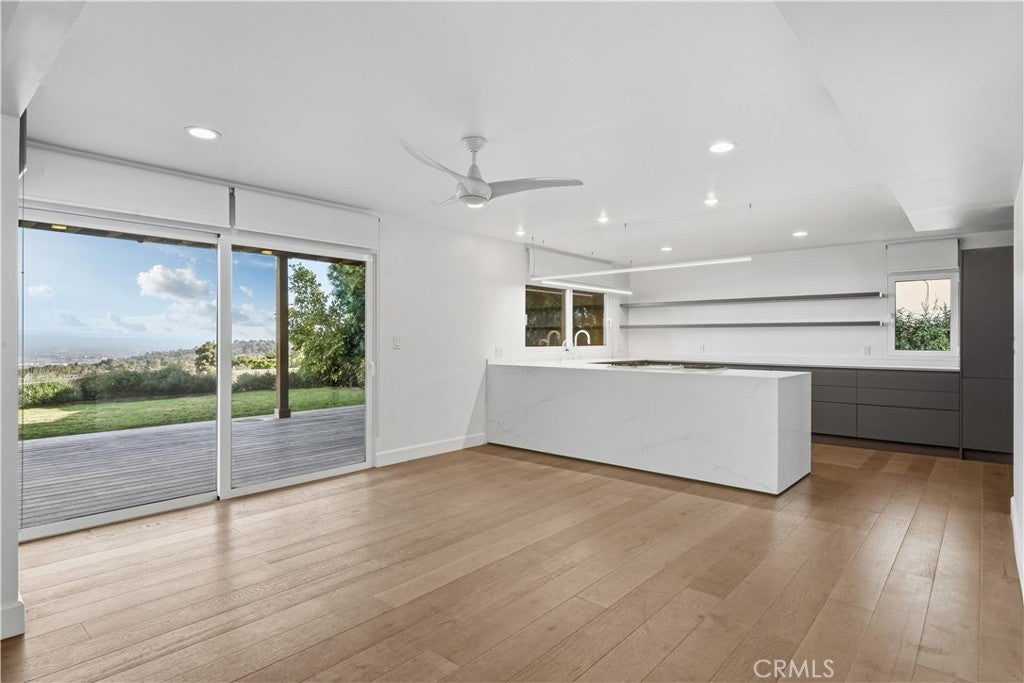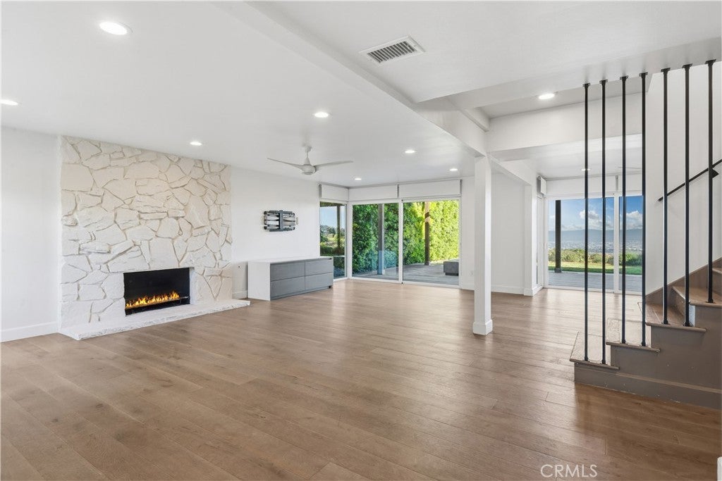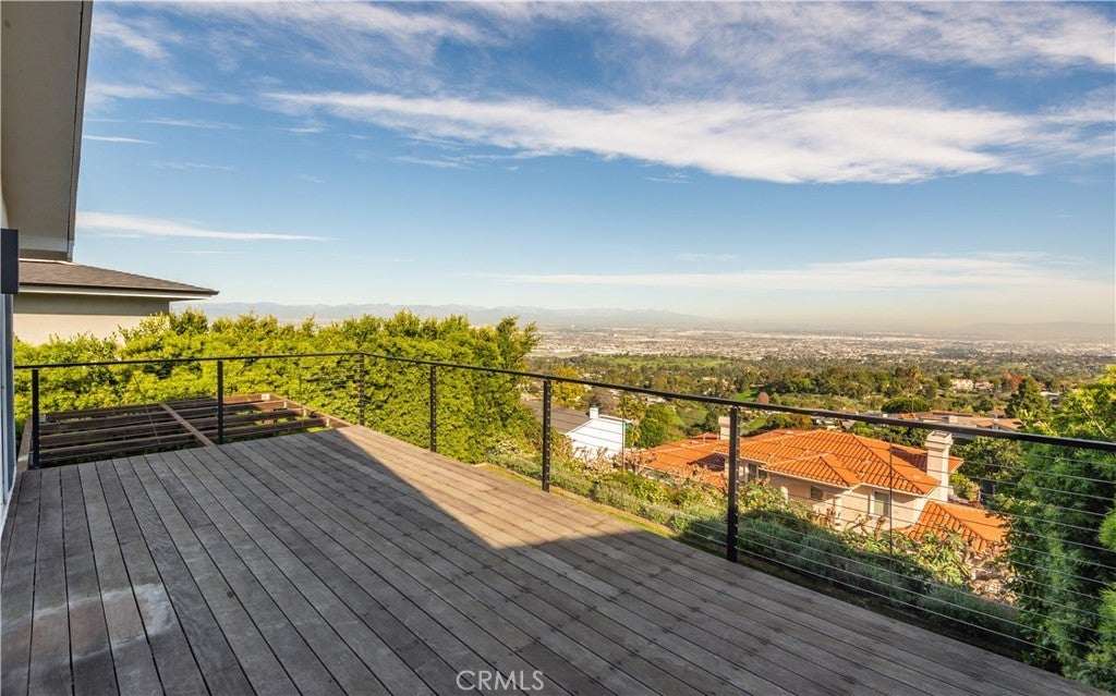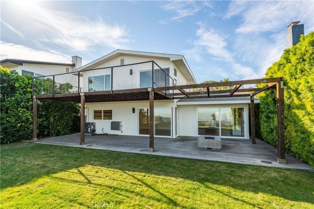 Panoramic views stretching from Downtown Los Angeles to Long Beach set the stage for this beautifully positioned home. The spacious living room, anchored by a fireplace, flows seamlessly into the formal dining area and a sleek European-style kitchen; perfect for both everyday living and entertaining. Just beyond, the expansive outdoor space features a large wood deck with fire pit, a generous grassy yard, and sweeping, unobstructed views that truly define the home. Upstairs, three generously sized bedrooms provide comfort and privacy, two of which enjoy stunning vistas. The primary suite is a standout, offering a remodeled bathroom and direct access to an oversized wood deck, ideal for taking in the scenery morning or night. Additional highlights include air conditioning and direct garage access. Conveniently located near top local schools, shopping, and dining at the Peninsula Center, this home offers both tranquility and everyday accessibility.