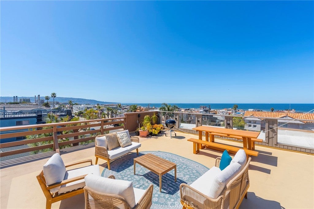 This Hermosa Beach Sand Section 2-bedroom, 2-bathroom corner unit with approx. 900 sq. ft. offers a cool and functional layout in a prime location. With an ocean view balcony, 2 blocks from the sand, moments to Hermosa Beach Pier, local shops, and across the street from the neighborhood favorite Granny’s Grocery. INTERIOR FEATURES: Open-concept living, dining, updated flooring in living spaces, and kitchen with ample cabinet space and included stainless steel appliances; Balcony with coastal breezes and view of the ocean, and panoramic ocean views from the rooftop deck. BEDROOM & BATHROOM: Private, well-sized bedrooms with generous closet spaces; En suite bathrooms in both bedrooms. BUILDING AMENITIES: Rooftop deck with panoramic ocean views from Malibu to Palos Verdes; Space for entertaining and relaxing; Coin-operated Laundry. PARKING & STORAGE: Dedicated enclosed 1-car garage space. HIGHLIGHTS: Corner unit; Ocean view balcony, Combination of practical floor plan and updated finishes; Central Hermosa Beach location.