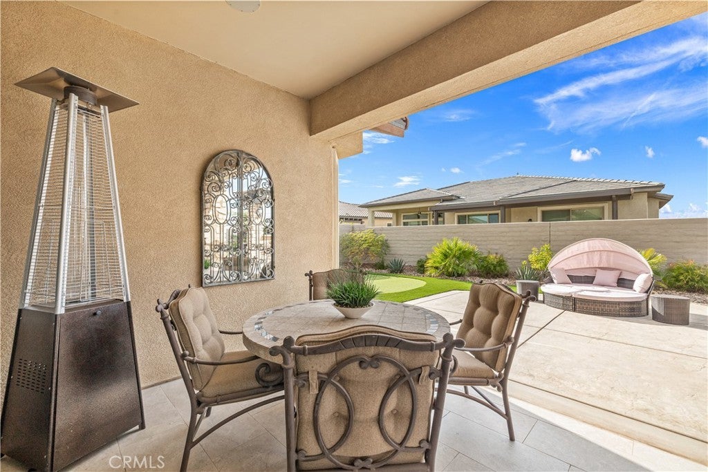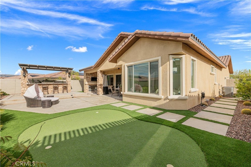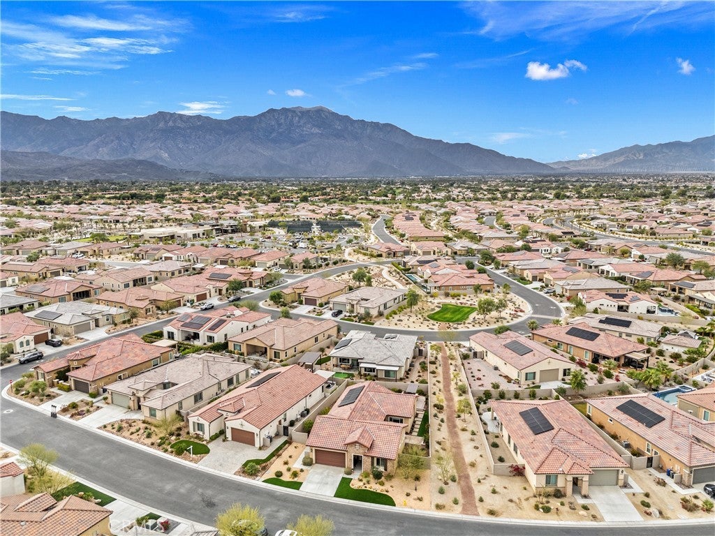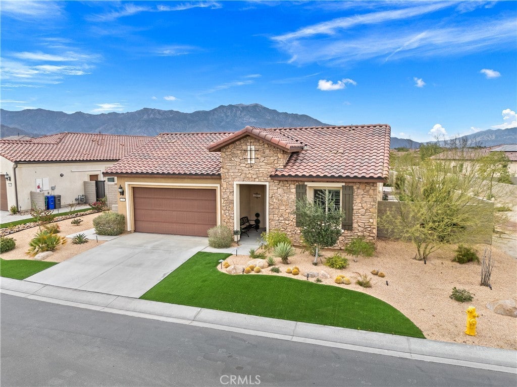 Welcome to this stunning 2-bedroom, 2-bath residence with an elegantly designed den, located in the highly sought-after Del Webb Rancho Mirage 55+ community. This property is located on one of the largest lots within the community just under 8,000 sqft. Meticulously upgraded and beautifully curated, this exceptional home blends sophisticated design with effortless indoor-outdoor living, all with serene mountain views. The open-concept family room is a true showpiece, featuring a custom white stone fireplace, recessed- lighted display niches, and an integrated surround sound system that creates an immersive entertainment experience. The kitchen and laundry room are enhanced by designer tile backsplashes, while thoughtfully crafted custom cabinetry includes built-in drawers in the front bedroom and custom shelving, cabinetry, and a built-in desk in the den, ideal for a refined home office or creative retreat. The expansive primary suite offers a private sanctuary, highlighted by a beautifully appointed spa-inspired bathroom and large walk-in closet with fully customized built-in shelving and cabinetry designed for both elegance and organization. Blackout shades provide comfort for those hot days and privacy, completing the serene retreat. Additional luxury appointments include remote-controlled shades on the living room patio doors, custom shades in the family room, and classic plantation shutters in the den, front bedroom, and primary bathroom. As well as, luxury vinyl plank flooring throughout. The laundry room is equally refined with custom risers and drawers, elevating the washer and dryer for added ease and convenience. Step outside to a resort-style outdoor oasis crafted for both relaxation and entertaining. The enclosed patio with porcelain tile flooring flows seamlessly to a custom outdoor kitchen with stone finishes, built-in grill, countertop, and pergola. A custom concrete patio with illuminated steps, a 3-hole putting green, and artificial turf in both the front and back yards create a low-maintenance yet luxurious environment. An outdoor stone entertainment wall, designed to match the grill area, completes this exceptional space. This remarkable residence delivers refined luxury, thoughtful design, and resort-style living within one of Rancho Mirage’s most desirable communities.