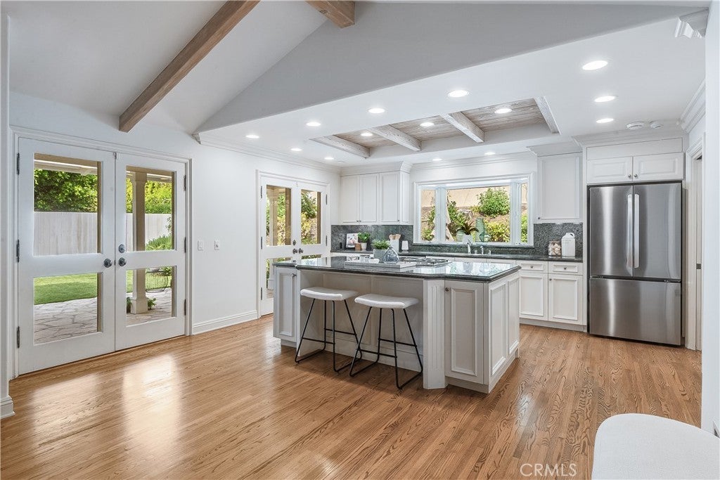 Welcome to this beautifully appointed 3-bedroom, 2-bath charmer, perfectly designed for both entertaining and everyday relaxation. Ideally located across from the Palos Verdes Golf Course, this home blends timeless elegance with modern updates and stunning indoor-outdoor flow. Step inside to find hardwood floors, soaring high ceilings, and huge windows that flood the home with natural light. The inviting living spaces are anchored by two fireplaces, creating warmth and character throughout. The thoughtfully updated kitchen features granite countertops, an island with breakfast bar, a new refrigerator, and a new dishwasher—perfect for hosting or casual meals. Outside, enjoy multiple stone patios, ideal for dining al fresco or unwinding in a serene setting. The primary suite is a true retreat, offering marble countertops in the bath and a walk-in closet, while the classic tile roof adds to the home’s enduring curb appeal. A rare opportunity to own a charming Valmonte home in an unbeatable location—this one checks all the boxes.