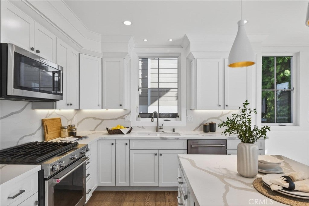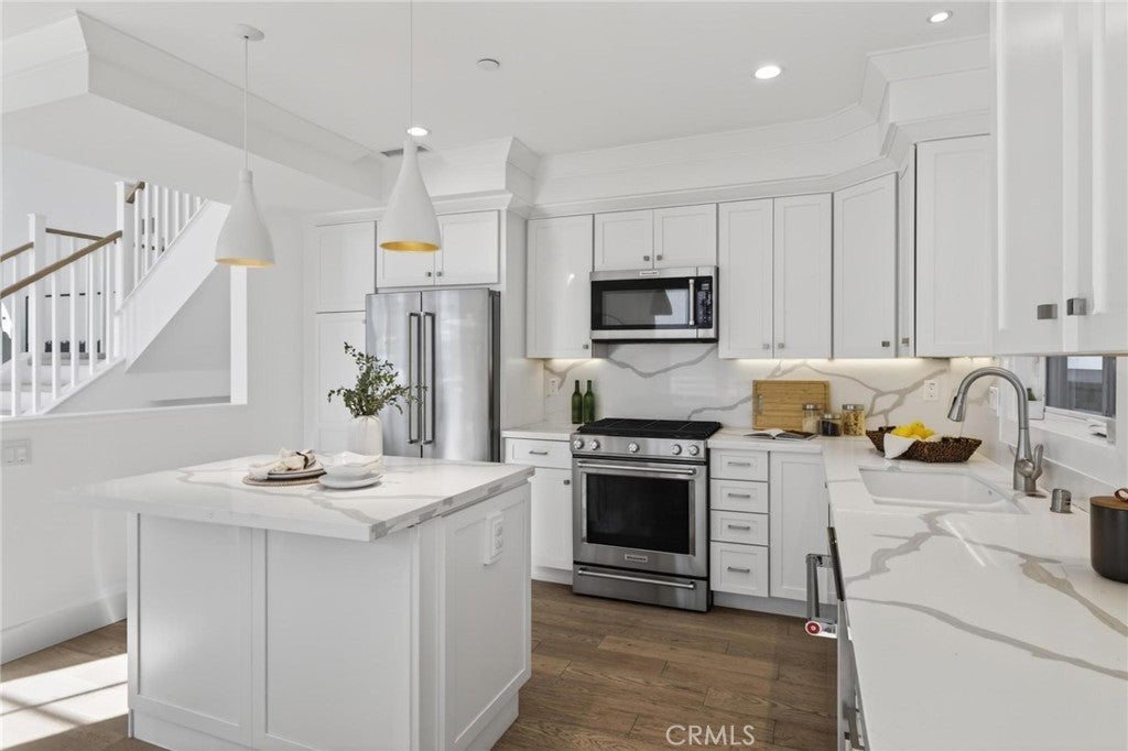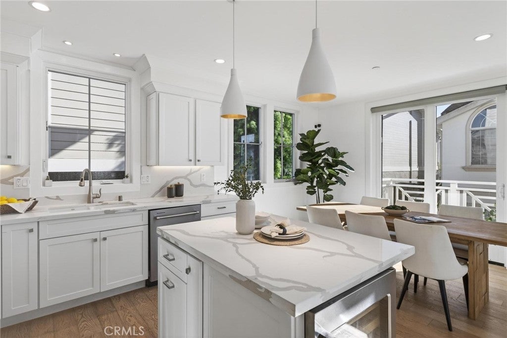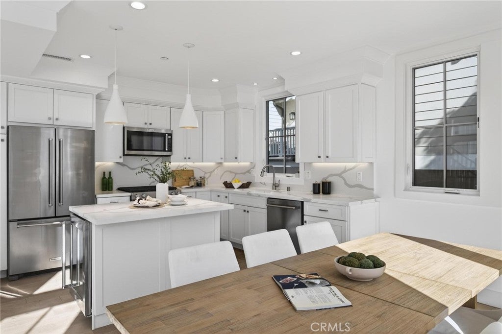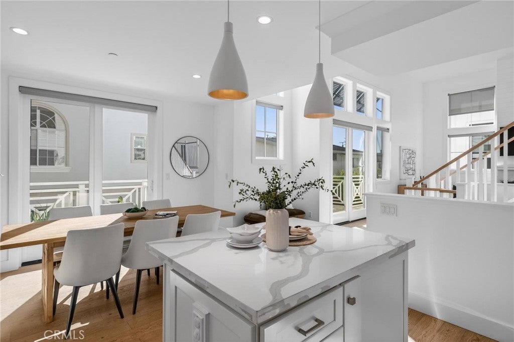 Presenting ~ 2114 Carnegie Ln #C. A stunning blend of style and function, this home features a designer-inspired open floor plan and premium finishes that elevate every space along with a with a warm family home feel. The living areas are adorned beautifully & adjust to any lifestyle from the family / kid’s study-play area, to the sophisticated adult entertaining space. This private and serene residence offers the best of coastal living—just a short walk to schools, locally owned dining and shopping, and only 2 miles to the beach. This generously sized home features wide-plank European Oak hardwood flooring throughout, complemented by vaulted ceilings that enhance the already spacious floor plan. The layout includes five bedrooms, two outdoor decks plus a spacious rooftop deck perfect for unwinding under the stars. The luxurious primary suite is impressively scaled, offering a deep soaking tub, triple-wide closet, marble-topped fireplace, and a shiplap-accented feature wall. At the heart of the home, the great room showcases a stunning fireplace, wood-beamed vaulted ceilings, and sliding glass doors that open to both outdoor decks, creating seamless indoor-outdoor living. The chef’s kitchen is beautifully appointed with quartz countertops, top-of-the-line stainless steel appliances, a 5-burner range, French-door refrigerator, and a dual-zone wine refrigerator built into the perfectly sized island with seating for two, plus a generous dining area. The top-floor bedroom opens to a private rooftop deck, ideal for relaxing or entertaining while enjoying cool Pacific Ocean breezes. Four bedrooms feature private En-Suite baths. Additional amenities include a Lutron smart home system, smart custom blinds, water softener / purification system, electric car charger, tankless water heater, and central heating and cooling. The home commands attention at every corner. Come take a look at this South Bay GEM !!!