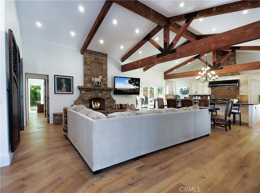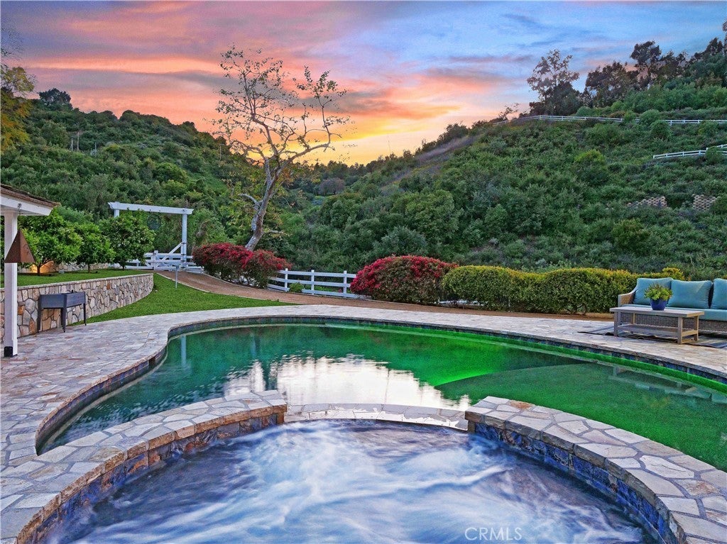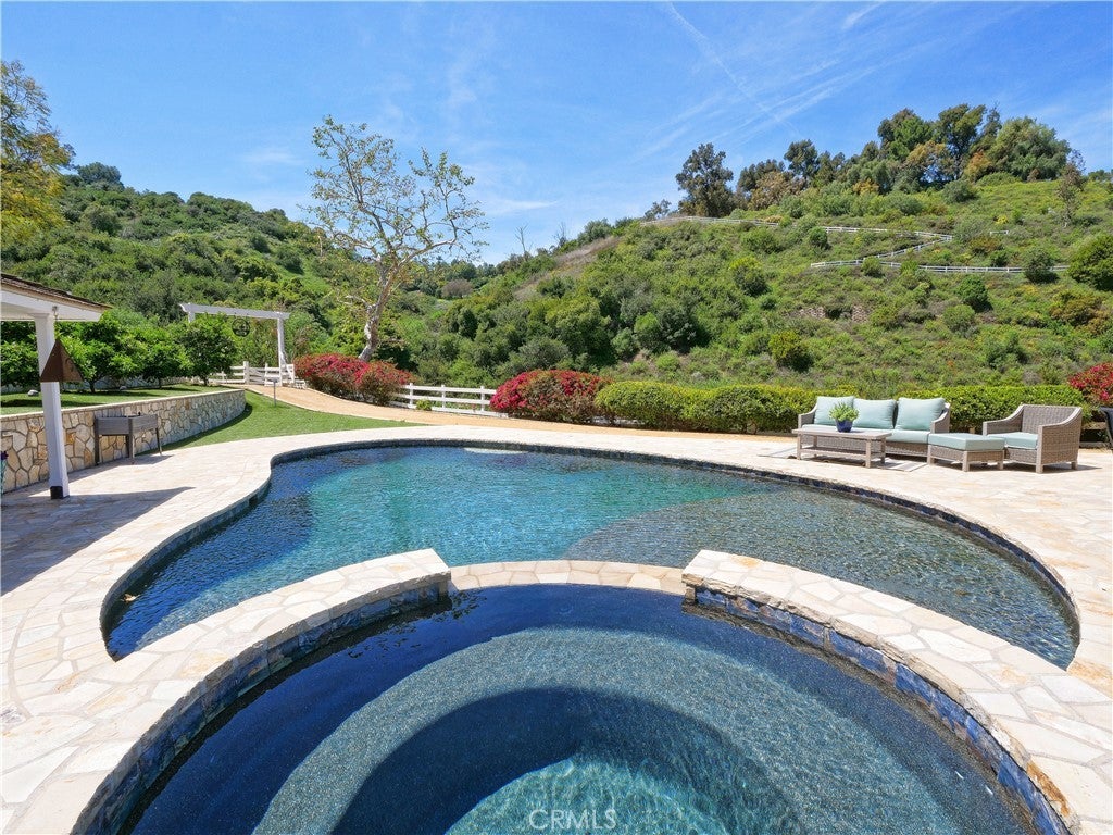 Set on approximately 2.7 acres in the exclusive, gated community of Rolling Hills, this exceptional equestrian estate blends refined living with the serenity of the countryside. Beautifully renovated in 2023, the approximately 3,833 sq. ft. main residence offers 3 bedrooms and 3.5 bathrooms. The expansive great room showcases soaring wood-beamed ceilings, beautiful oak flooring, and a dramatic stacked-stone fireplace, opening seamlessly to the gourmet kitchen appointed with Viking and Sub-Zero appliances and an impressive 10-foot island. An oversized multipurpose room functions beautifully as a second family room or game room and offers flexibility as a potential additional bedroom. Outdoors, unwind by the resort-style pool with Baja shelf and spa, complemented by a convenient pool house with bathroom, shower, and dressing area. A secluded approximately 800 sq. ft. Guest House features one bedroom and bath, a living room with fireplace, kitchenette, and sweeping countryside views, which is ideal for guests, extended stays or the perfect home office. Equestrian amenities include a three-stall barn with tack room and hot walker, with easy access to miles of riding trails and the nearby riding ring. An oversized stamped-concrete driveway provides effortless access to the three-car garage. Additional highlights include air conditioning, backup generators, collapsible doors, four fireplaces, and the rare, tranquil feeling of country living just moments from everything the Peninsula has to offer.